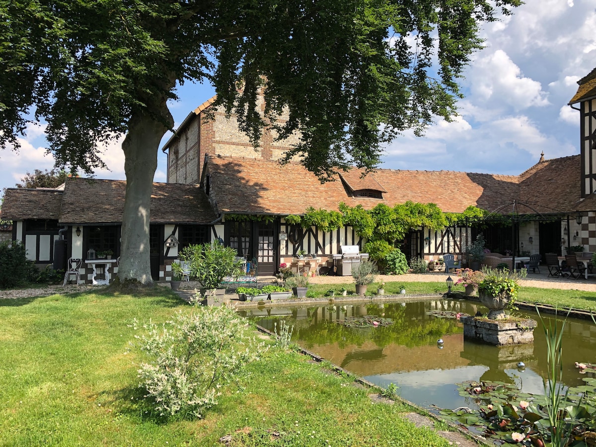 Milli Parísar og Deauville, í hjarta Normandí, nálægt list og menningu, býður stórhýsið frá 1908 þér að njóta kyrrðarinnar og garðsins, einsamall, með fjölskyldunni, í viðskiptaferð. Þér mun líða eins og þú getir lifað í tignarlegu umhverfi fyrri hluta 20. aldar. Móttökur í almenningsgarðinum Hafðu samband við mig takk fyrir