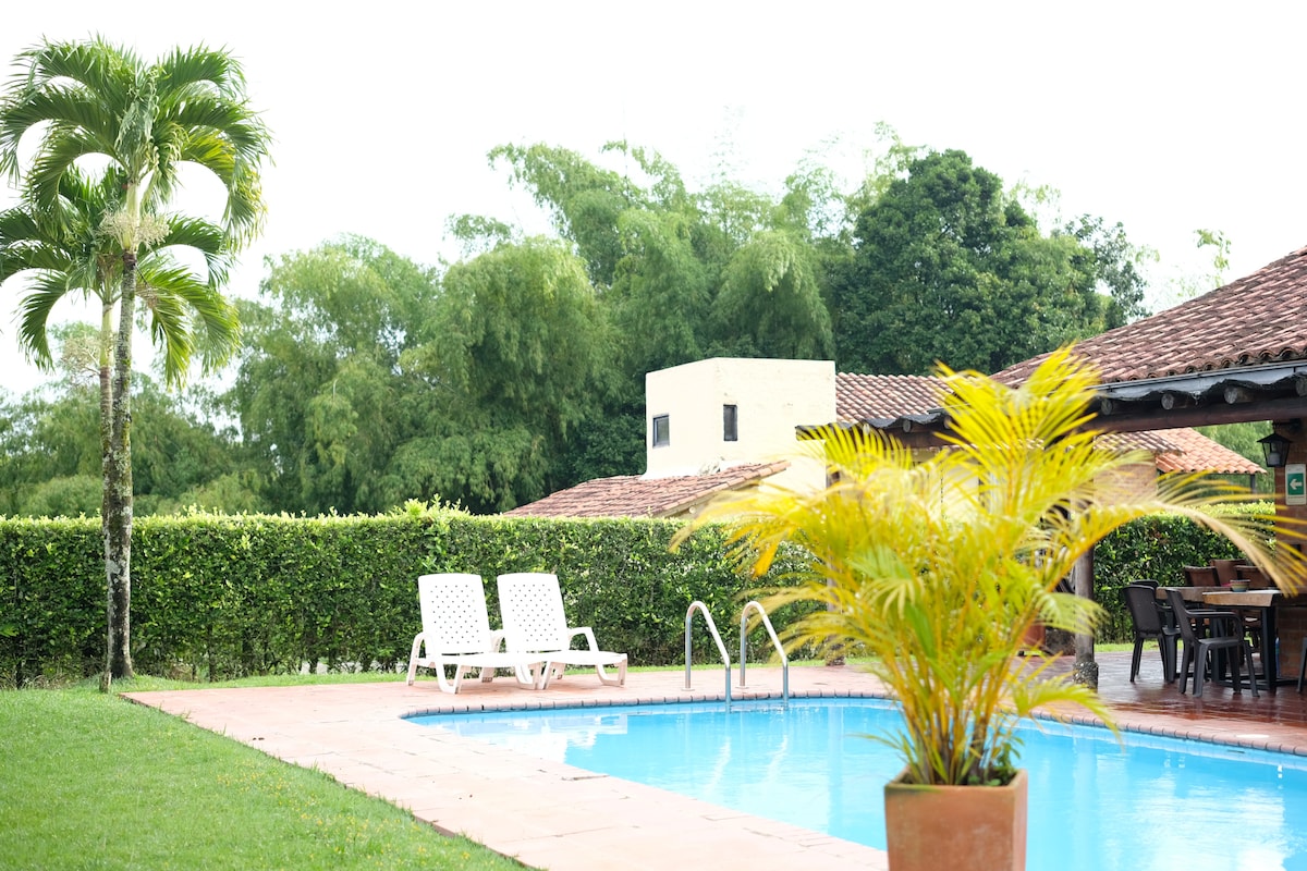 Villa Kiara is the perfect home for relaxation and enjoyment. Located within the exclusive Fincas Panaca condominium, next to Panaca Park, 7 km from Quimbaya, and 20 km from the National Coffee Park. It boasts a perfect climate, a private pool with a natural view, and is close to all the tourist attractions in the beautiful coffee region. This home is ideal for families or groups of friends. It also features 24-hour Starlink internet, Direct TV, and private parking on site.