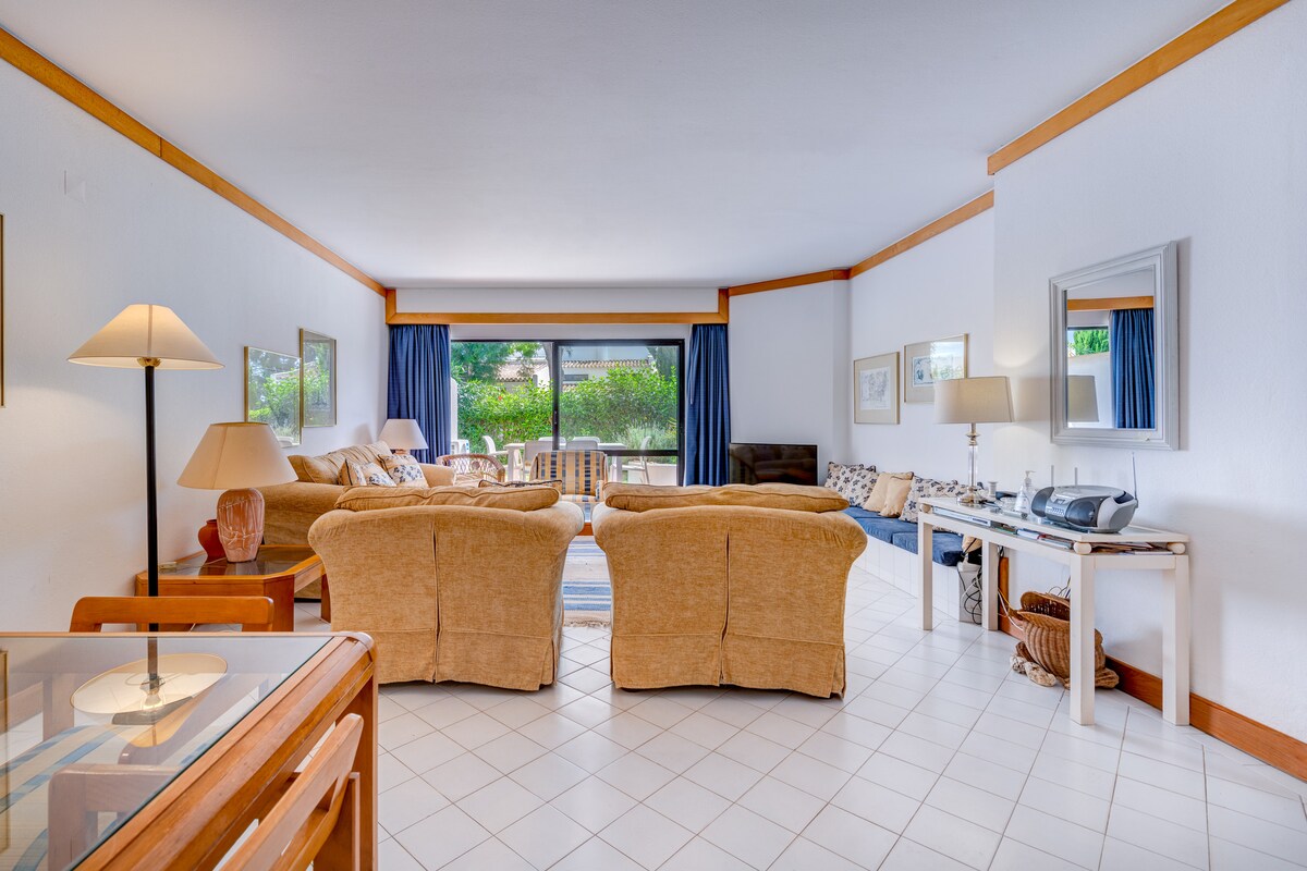 Pinhal do Golfe er rólegt, fallegt landslagshannað og öruggt Complex. Þessi yndislega íbúð á jarðhæð býður upp á rólegt og notalegt umhverfi fyrir fríið og þar er tilvalið að borða úti eða slaka á í sólinni. Það eru engar helstu áhyggjur af því að ung börn gætu dottið af veröndinni þar sem íbúðin er á jarðhæð og með beint aðgengi að almenningsgörðum og sundlaug.