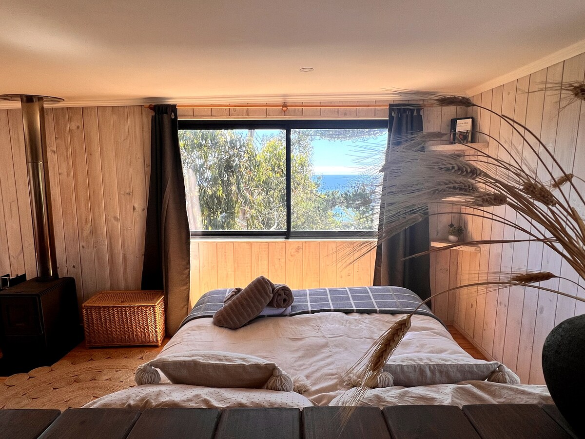 Gleymdu áhyggjum á þessum frábæra stað. Þetta er vin í kyrrðinni! Casa Curaumilla er með 2 svefnherbergi, bæði með ótrúlegu sjávarútsýni. Þú munt einnig finna stofu og borðstofu með stórum gluggum til að njóta útsýnisins. Auk þess getur þú slakað á á heita pottinum með ótrúlegum skógi og sjávarútsýni. Þú munt einnig finna útisvæði eins og verönd til að njóta töfrandi sólseturs. FYLGDU EN IG: @punaloslobos