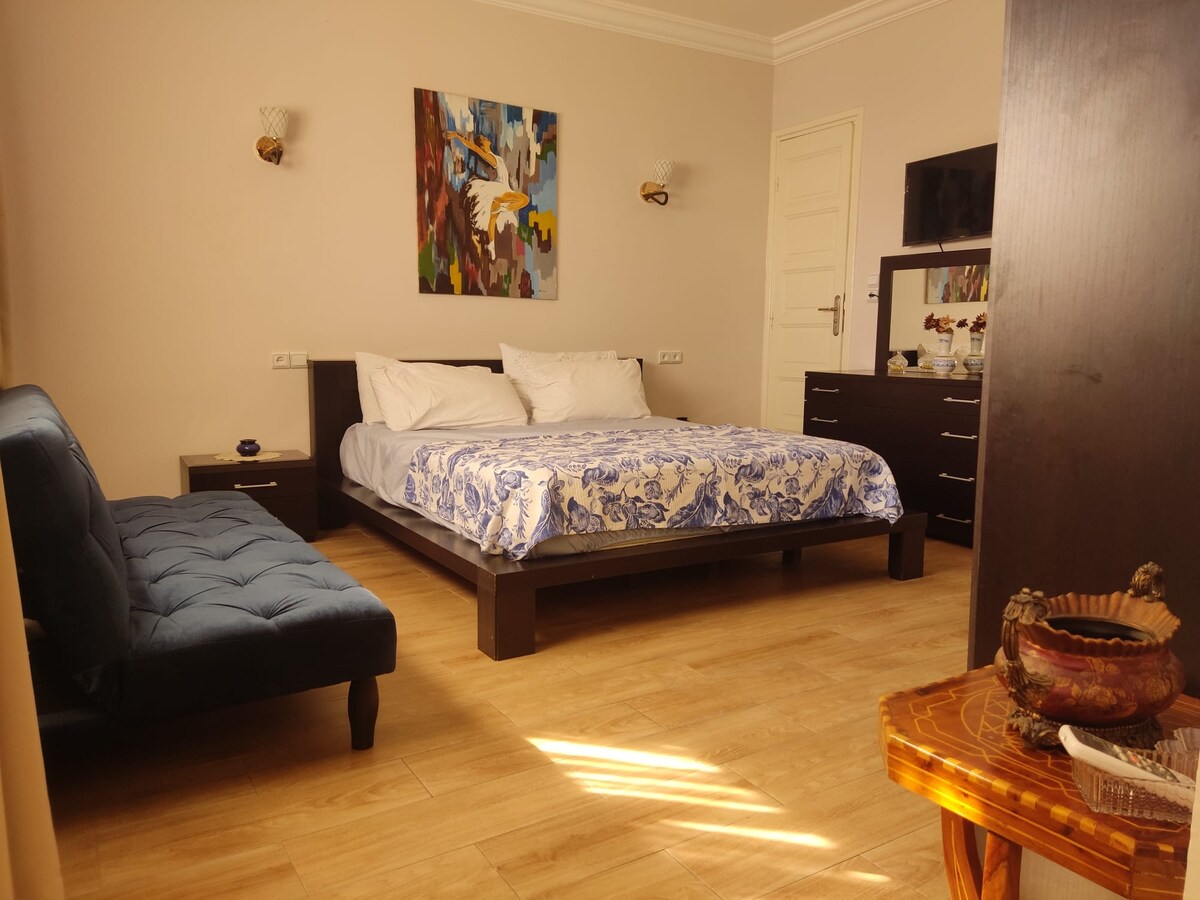 Experience luxury in the heart of Rabat, Morocco's capital city! This refined space features cozy nooks, a comfortable bed, a fully-equipped kitchen, and free WiFi. It has everything you need for a soothing stay. This modern apartment is located in the chic upper side of Agdal, close to the Sofitel Hotel, Descartes School, and Ibn Sina Forest. Conveniently located, the flat is few steps away from the main street, full of shops, cafes and restaurants. It's only 10 minute-drive from the Medina.