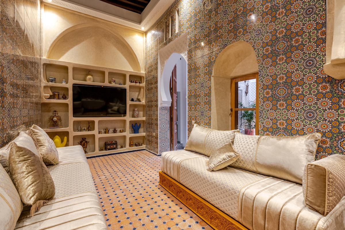 Falinn fjársjóður í hjarta Medina of Rabat í Marokkó. Riad var nýuppgert árið 2024 og sameinar hefðbundinn sjarma og nútímalegan glæsileika. Hver dvöl býður upp á ógleymanlega upplifun með 7 frábærum svefnherbergjum, marokkóskri stofu, eldhúsi og verönd með dásamlegu útsýni yfir Medina. Riad er staðsett í friðsælu húsasundi og er fullkominn staður til að upplifa alla töfra Rabat um leið og þú nýtur óviðjafnanlegs friðar.