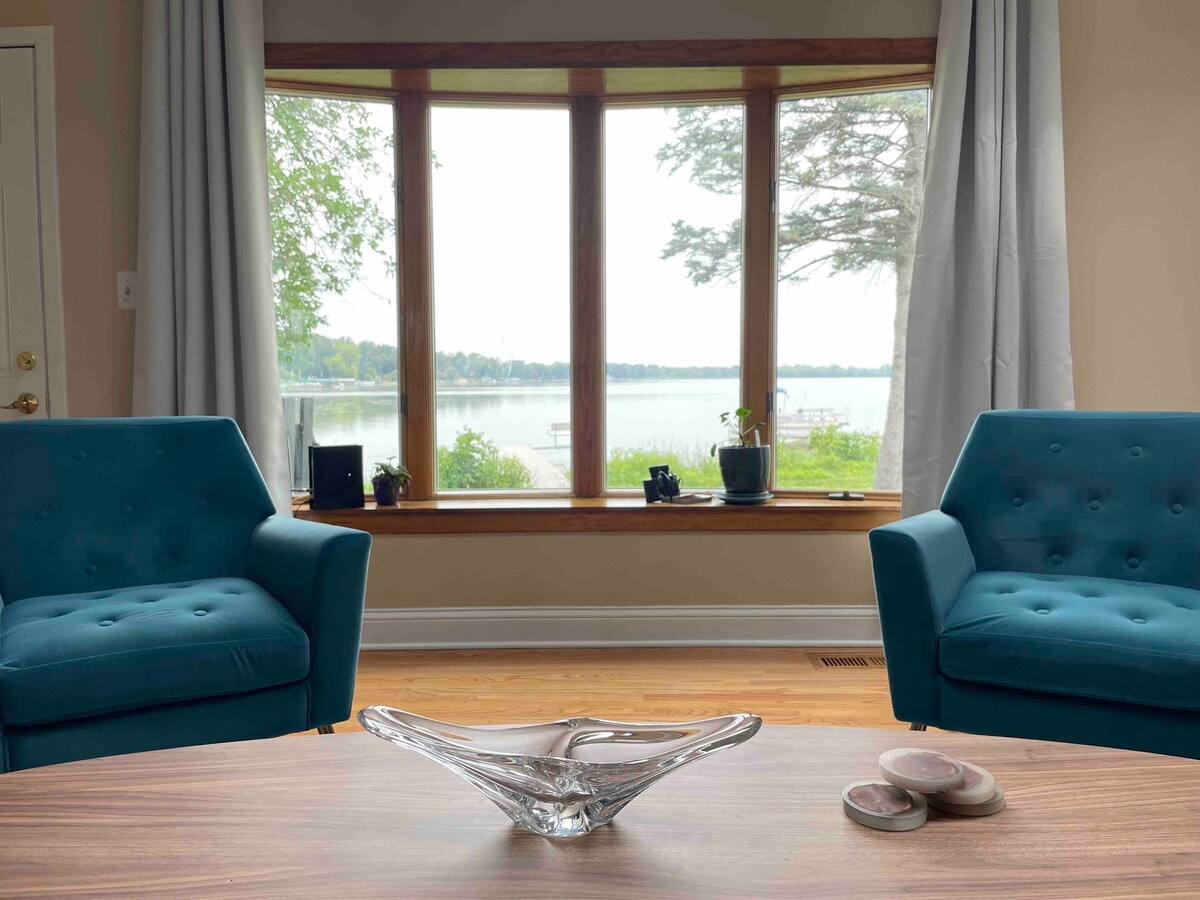 Nútímalegi bústaðurinn okkar í sveitastíl við Tichigan-vatn hefur verið endurnýjaður að fullu. MJÖG SJALDGÆFT, með tveimur en-suite baðherbergjum - segðu bless við biðtíma! Bústaðurinn okkar býður upp á friðsælt afdrep með mögnuðu útsýni yfir stöðuvatn úr hverju herbergi. Svefnpláss fyrir 8, gæludýravænt og fullbúið eldhús. Njóttu sameiginlegrar leigu við stöðuvatn, bryggju og ponton (maí-sept). Fullkomið fyrir hópa. Skoðaðu notandalýsinguna okkar til að leigja báða bústaðina á sömu forsendu! 30 mín. fr. Alpine Valley & Rock Snow Park 30 mín. fr. Mke 1 klst. fr. Chicago