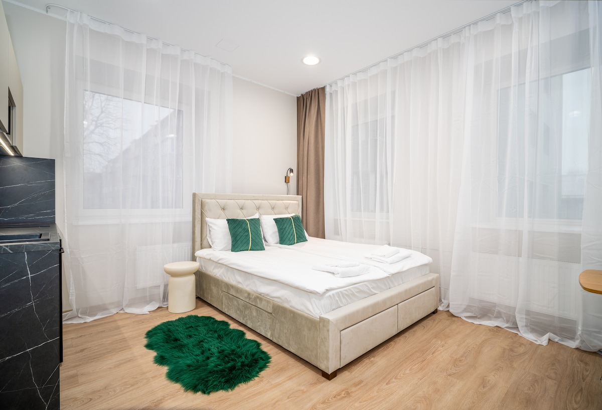 Experience the perfect blend of comfort, elegance, and tranquility in our beautifully designed apartment located in the very center of Tallinn. Set in a modern building, this serene urban retreat offers a sunlit interior and a spacious balcony overlooking a landscaped courtyard garden. The apartment comfortably accommodates up to 4 people and ensures restful nights thanks to its exceptionally quiet environment. Just minutes from the magical Old Town and the graceful paths of Kadriorg Park.