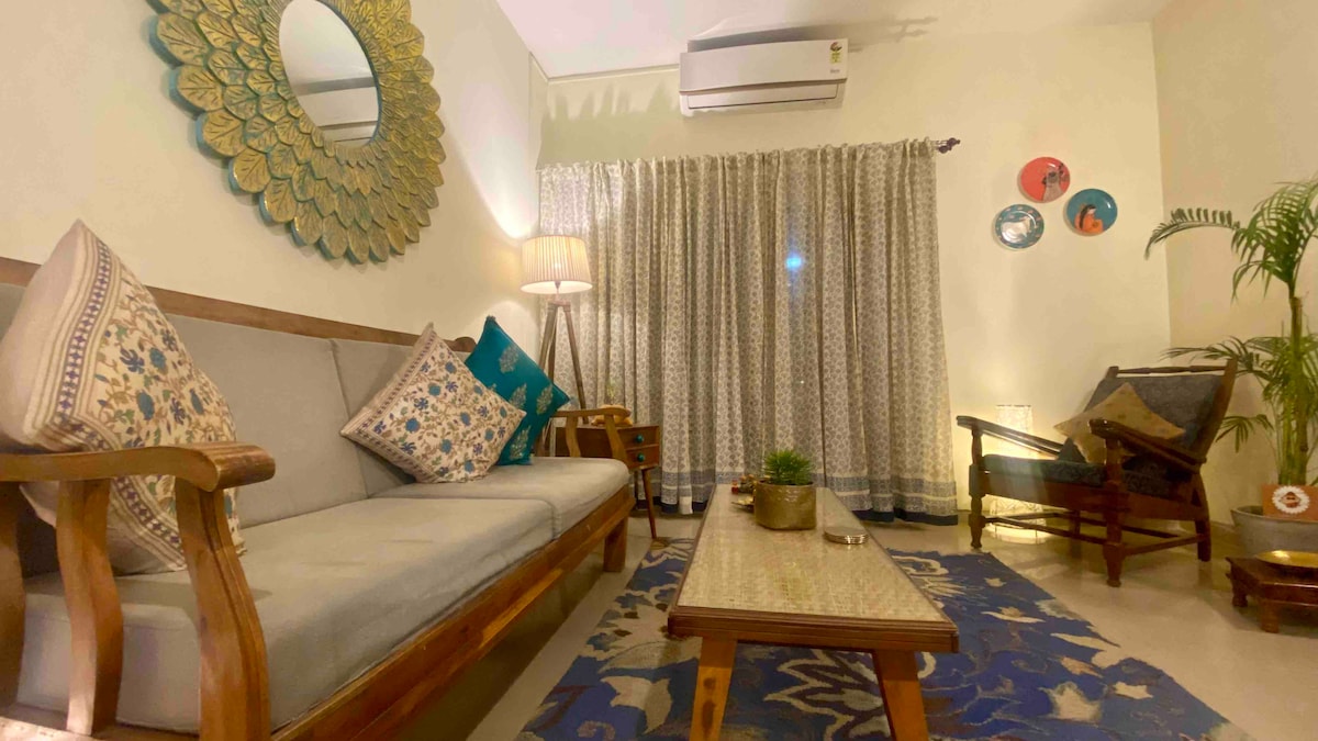 Vertu dáleiðandi í einstöku og rólegu fríi í hinni heilögu borg Vrindavan; heimili okkar Manmohana hefur verið hannað til að skapa umbreytandi upplifun, innblásin af óaðfinnanlegum sjarma hins eilífa Kanhaji. Manmohana gæti verið ferð þín með innri friðsæld, fjarri einveru steypu eða þegar þú kemur til með að vera nýgræðingur. Tveggja svefnherbergja lúxusheimilið okkar er þægilega og vel staðsett með greiðan aðgang að öllum skoðunarferðum.