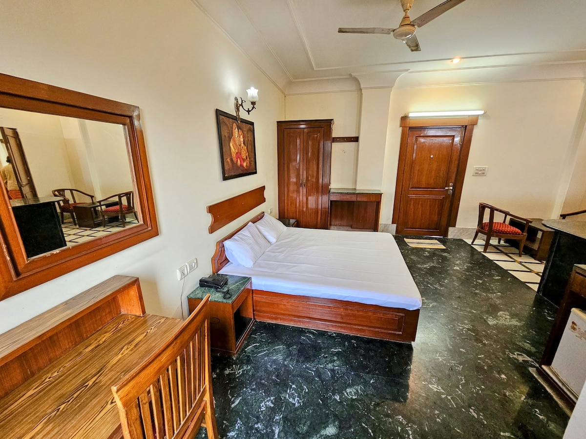 Prenditela con calma in questo spazio unico e rilassante. Þú þarft ekki að gefa neitt upp á þessu vel staðsetta rými. Loftkælt herbergi með baðherbergi; einfalt en notalegt, staðsett miðsvæðis, tilvalið til að heimsækja alla helstu helgu staði Sri Vrindavan Dham. Þessi bygging var eitt sinn goshala, skjól fyrir kýr og naut. Nú höfum við þurft að flytja kýrnar á stærri stað vegna vandamála í rýminu. Afrakstur herbergjanna sem við höfum byggt er til viðhalds þeirra.