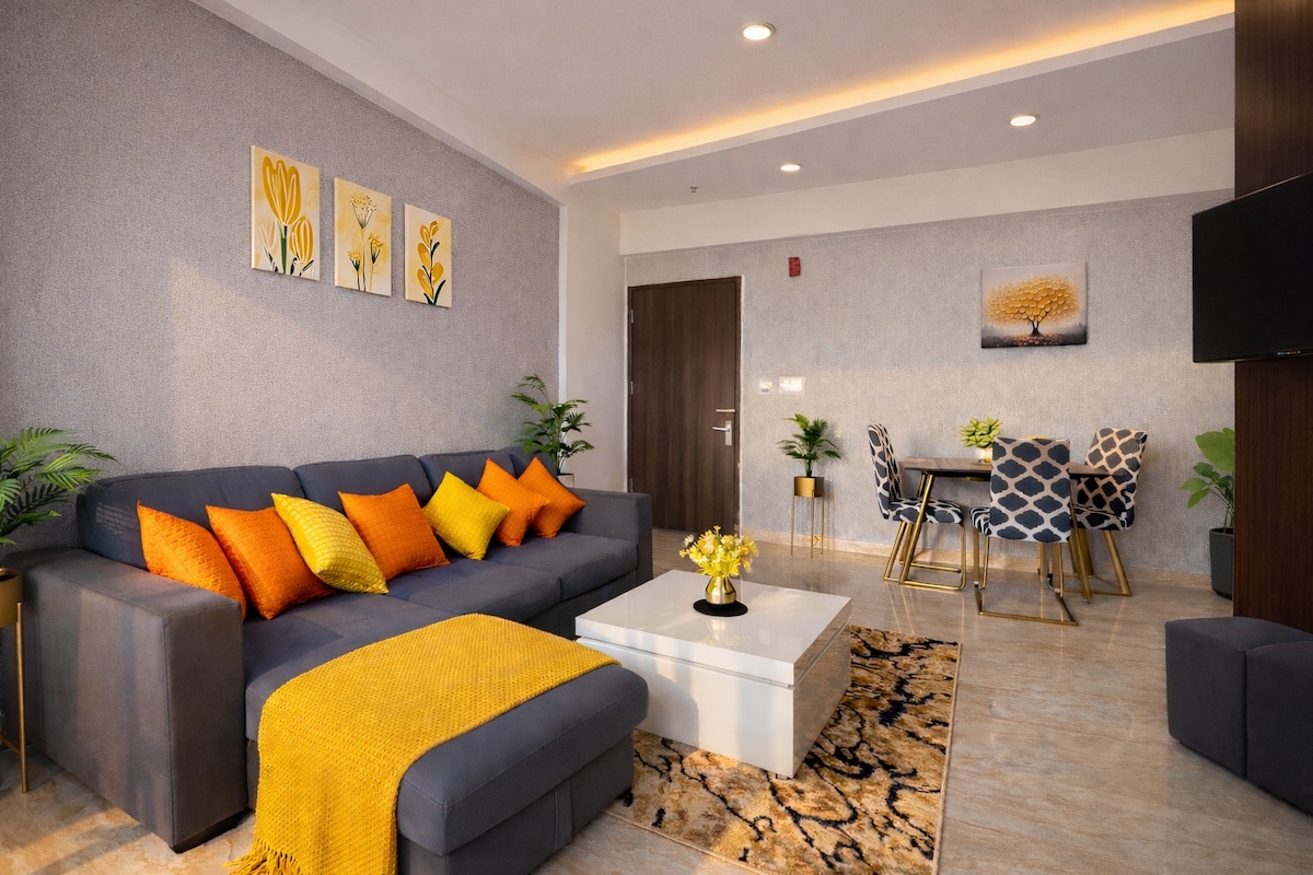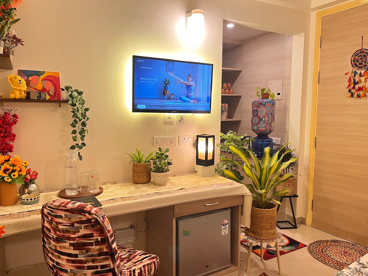 Íbúðin okkar er hönnuð til að sökkva þér í guðdómlegt andrúmsloft Vrindavan með úthugsuðum listaverkum frá Radha-Krishna og kyrrlátum smáatriðum. Svalirnar eru friðsæll staður sem er fullkominn fyrir afslöppun. Upplifðu lúxus í Vrindavan! Þessi íbúð er í nokkurra mínútna fjarlægð frá Prem Mandir, ISKCON-hofinu og Banke Bihari og býður upp á gríðarlegan frið með nútímaþægindum. Njóttu sjálfsinnritunar, háhraða þráðlauss nets, fullbúins eldhúss, snyrtivara og góðs umsjónarmanns sem mælir með staðnum.