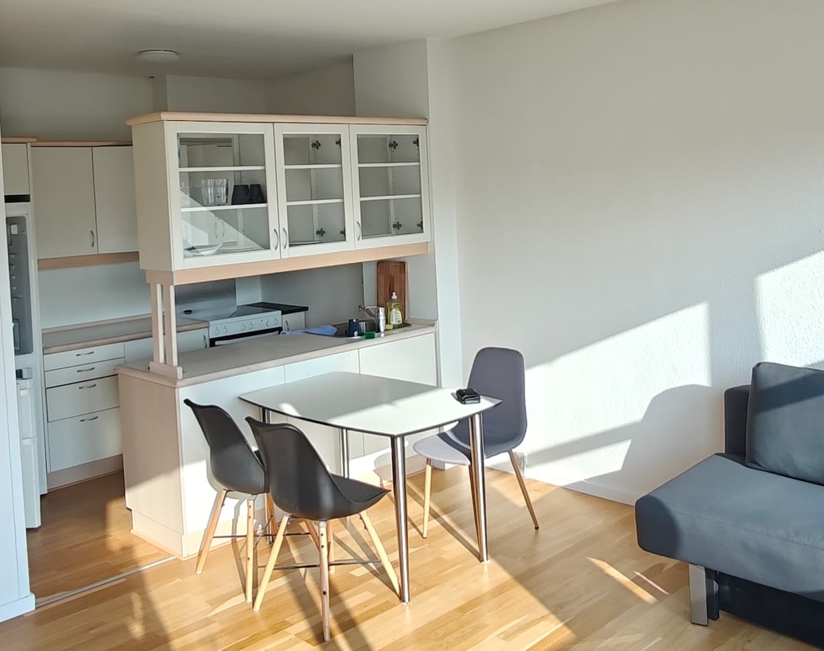Hér hefur þú einkagistingu sem er staðsett í stuttri fjarlægð frá almenningssamgöngum, verslun og fallegri náttúru. Þú ert með þína eigin íbúð með sérinngangi, sérsalerni og fullbúnu eldhúsi. Íbúðin skiptist í stofu og svefnherbergi. Í stofunni er sófi sem hægt er að breyta í þægilegt tveggja manna rúm og borð með pláss fyrir 4 manns. Í svefnherberginu eru tvö einbreið rúm sem auðveldlega má breyta í tvíbreitt rúm. Íbúðin er staðsett í rólegu umhverfi með bílastæði í boði.