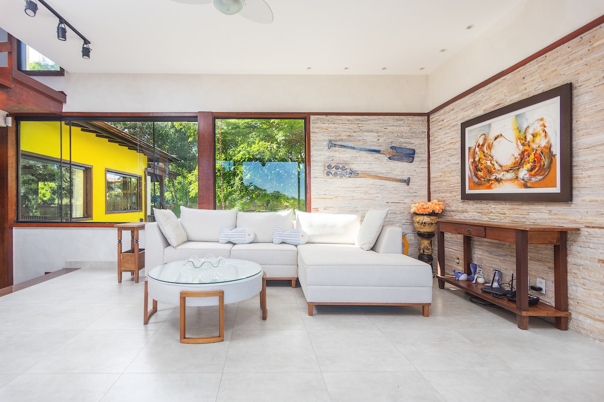 Njóttu þessa stílhreina og þægilega staðar með fjölskyldunni á Manguinhos-strönd, alveg við sandinn. Farðu í stutta gönguferð meðfram ströndinni til að komast að gönguleið sem liggur að Tartaruga-ströndinni, fallegum áfangastað, eða röltu til Porto da Barra til að njóta vinsælustu veitingastaðanna á svæðinu og slaka á með caipirinhas við sólsetur. Fyrir börn, fyrir utan upphituðu laugina og grasflötina, er auðvelt aðgengi að ströndinni frá húsinu og meira að segja lítill fótboltavöllur í innan við fimm mínútna göngufjarlægð.