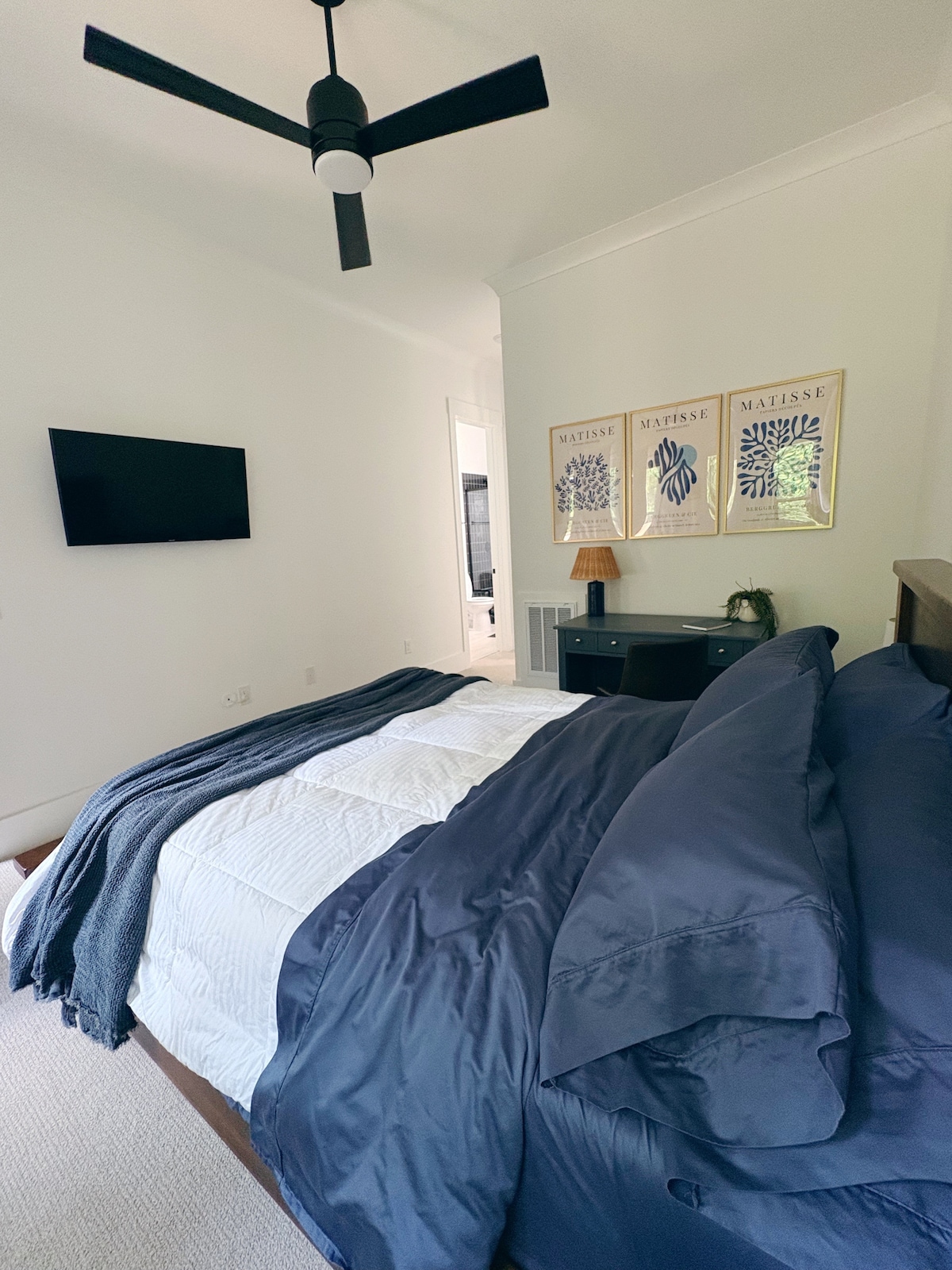 The Bull's Retreat, a newly renovated space with 2 King Beds and 2 single beds, ideal for travelers or getaways. It's centrally located in a peaceful neighborhood near Ft. Bragg, Fayetteville, Sanford & Southern Pines. It's great for reconnecting with familiy and friends. The open-concept living space includes a fully equipped kitchen, breakfast bar, dining area, 3 bedrooms, 2 bathrooms, and open living room. Note: Owners reserve the garage for personal use only; it isn't accessable to guests.
