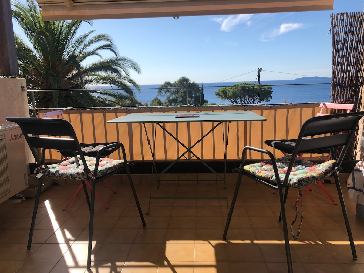 T2 climatisé vue mer, terrasse,piscine,Le Canadel