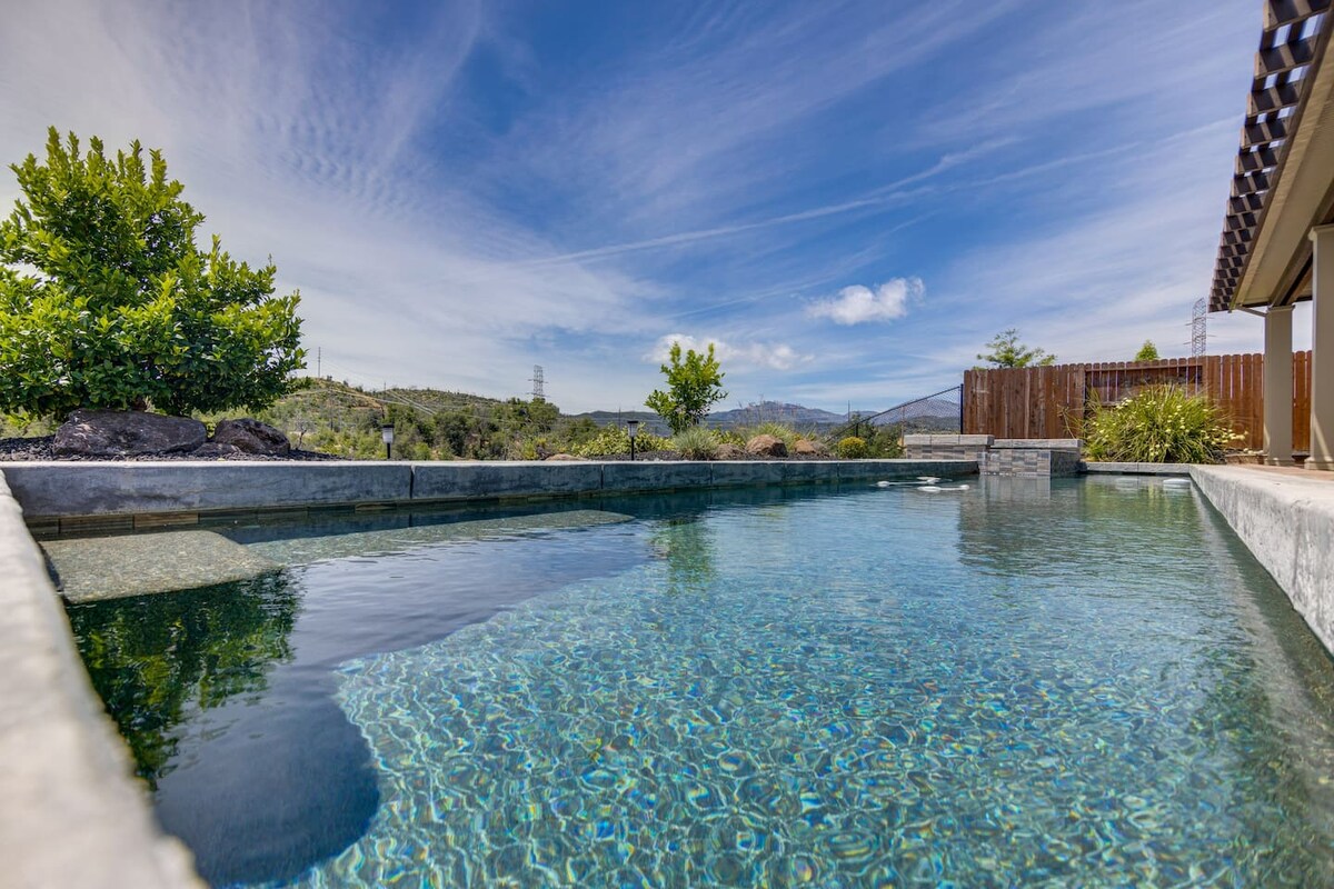 Kyrrð á 5 hektara svæði, 7 mínútur frá hjarta Redding. Staður þar sem nútímalegur evrópskur stíll og náttúrufegurð sameinast, auðvelt aðgengi í gegnum I5, það besta úr báðum heimum. Njóttu inni-/útivistar með sundlaug, árstíðabundnum heitum potti, útieldhúsi, grilli og pizzuofni Sötraðu morgunkaffið í garðinum eða slakaðu á með sólina setjast á þilfari sem koi tjörnin er þakin. Árstíðabundinn heitur pottur nóv-mar