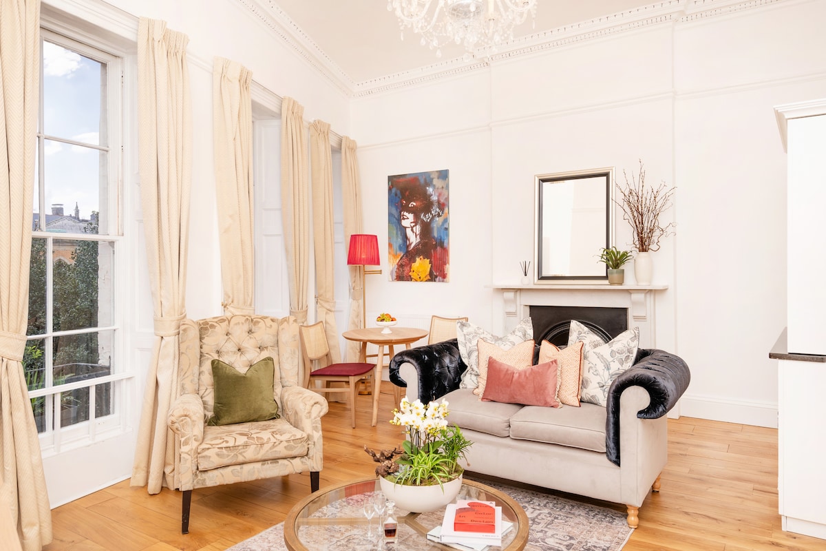 Stílhrein Clifton íbúð með útsýni yfir þak og gönguferð að Suspension Bridge. Stutt gönguferð í hjarta Clifton Village þar sem finna má flottar tískuverslanir, heillandi krár og kaffihús. Röltu um laufskrúðugar götur að hinni táknrænu Suspension Bridge, fallegum almenningsgörðum, Bristol Aquarium og hinu líflega hverfi Bristol Triangle.