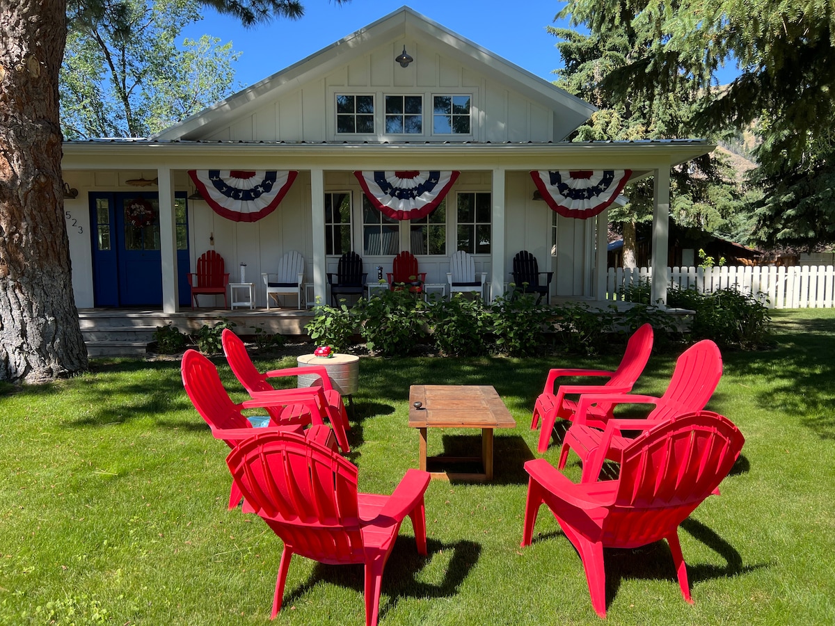 Sun Valley 98% OPINN! Gamaldags gistihús í Old Town Hailey með 1 svefnherbergi og lofti, 1 baðherbergi. Nærri hjólastígnum, auðveld göngufjarlægð frá bænum og nálægt gönguleiðum, fjallahjólum, fiskveiðum, skíðum og fleiru. Notalegt og þægilegt rými fyrir pör, litlar fjölskyldur eða nánar vini. Hágæða heimilistæki, áferðir og umhverfi. Þægileg rúm + rúmföt. Þessi kofi mun láta þér líða eins og heima hjá þér. Gæludýravænt. Komdu og heimsæktu táknræna litla fjallabæinn sem hefur birst í tímaritinu Sunset.