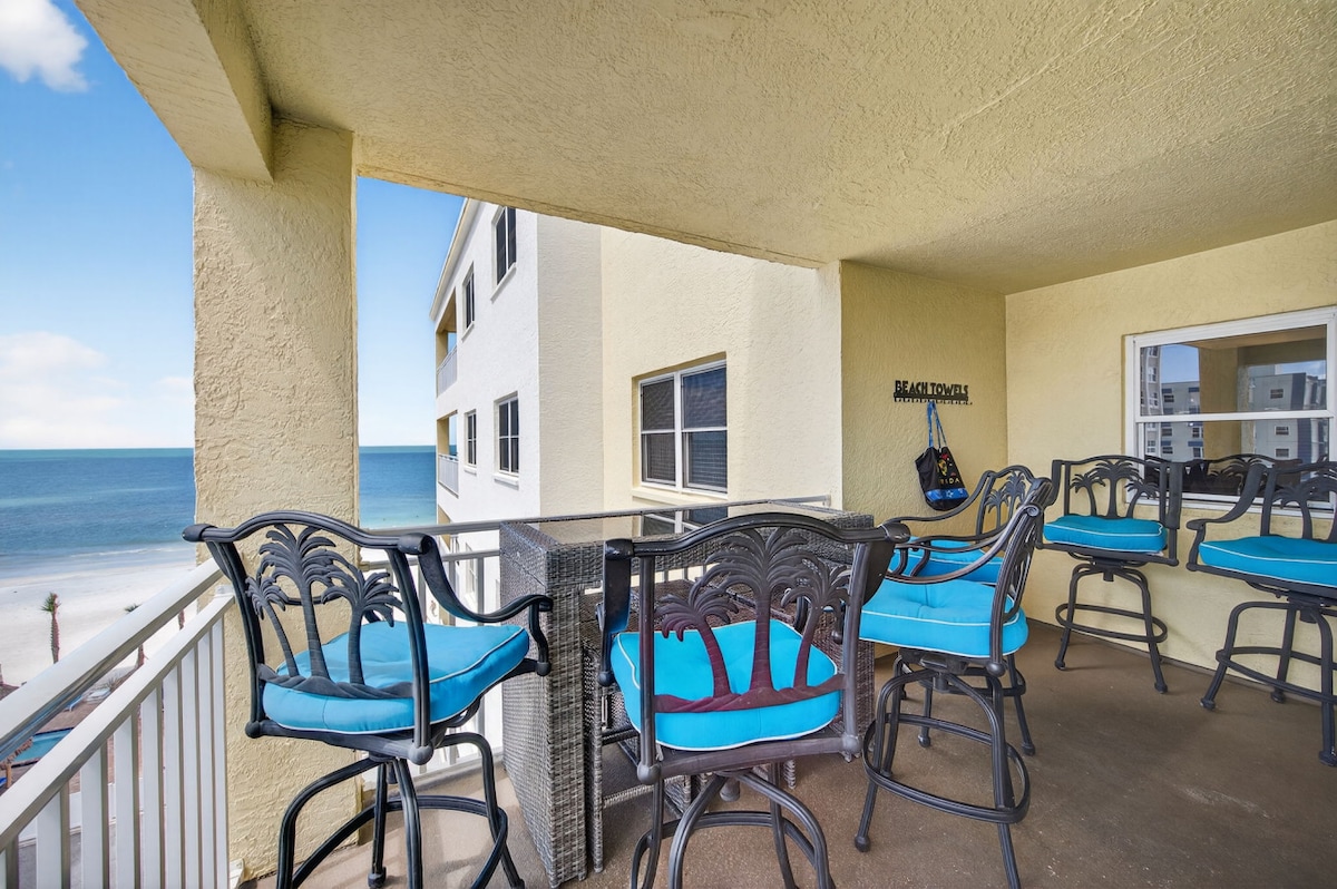 Dekraðu við þig, þú átt það skilið! Íbúðin okkar er uppfærð og innréttuð til þæginda og þæginda. Þetta er tilvalinn staður fyrir rómantíska paraferð, skemmtun í sólinni fyrir fjölskyldur eða paradís friðar fyrir eldri borgara. Njóttu þess að fylgjast með bátunum sigla framhjá svölunum okkar eða liggja við sundlaugina okkar og liggja í sólskininu. Stígðu út á ströndina, finndu hlýja sandinn á milli tánna og láta eftir þér flóann. Skapaðu ævilangar minningar og bræddu stressið við Indian Shores.