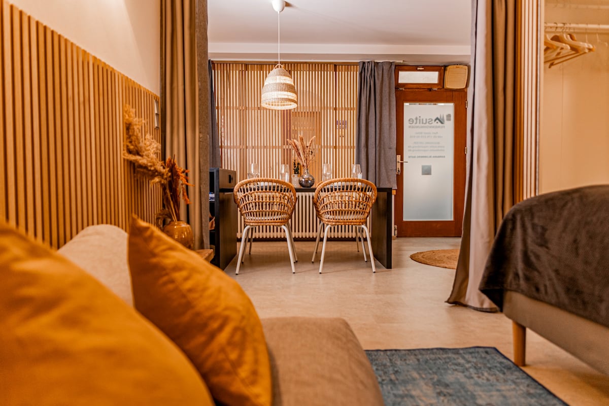 Nútímalegir, endurnýjaðir veggir bíða þín í kapellu frá miðöldum sem einkennist af sögulegum sjarma Regensburg á 68 m2 og 2,5 herbergjum. Eftirfarandi atriði sem þú átt von á: -Rómlega inngróinn garður -2 tvíbreið rúm, 1 svefnsófi, 1 svefnsófi Búnaður fyrir barnafjölskyldur -Besta staðsetningin í hjarta gamla bæjarins -Quiet -Lúxuslega útbúið eldhús -Baðherbergi með gólfhita -WLAN (50 Mbit, Fritzbox) -Snjallsjónvarp (Netflix,Prime) og síðast en ekki síst -persónulegur stuðningur frá mér :-)