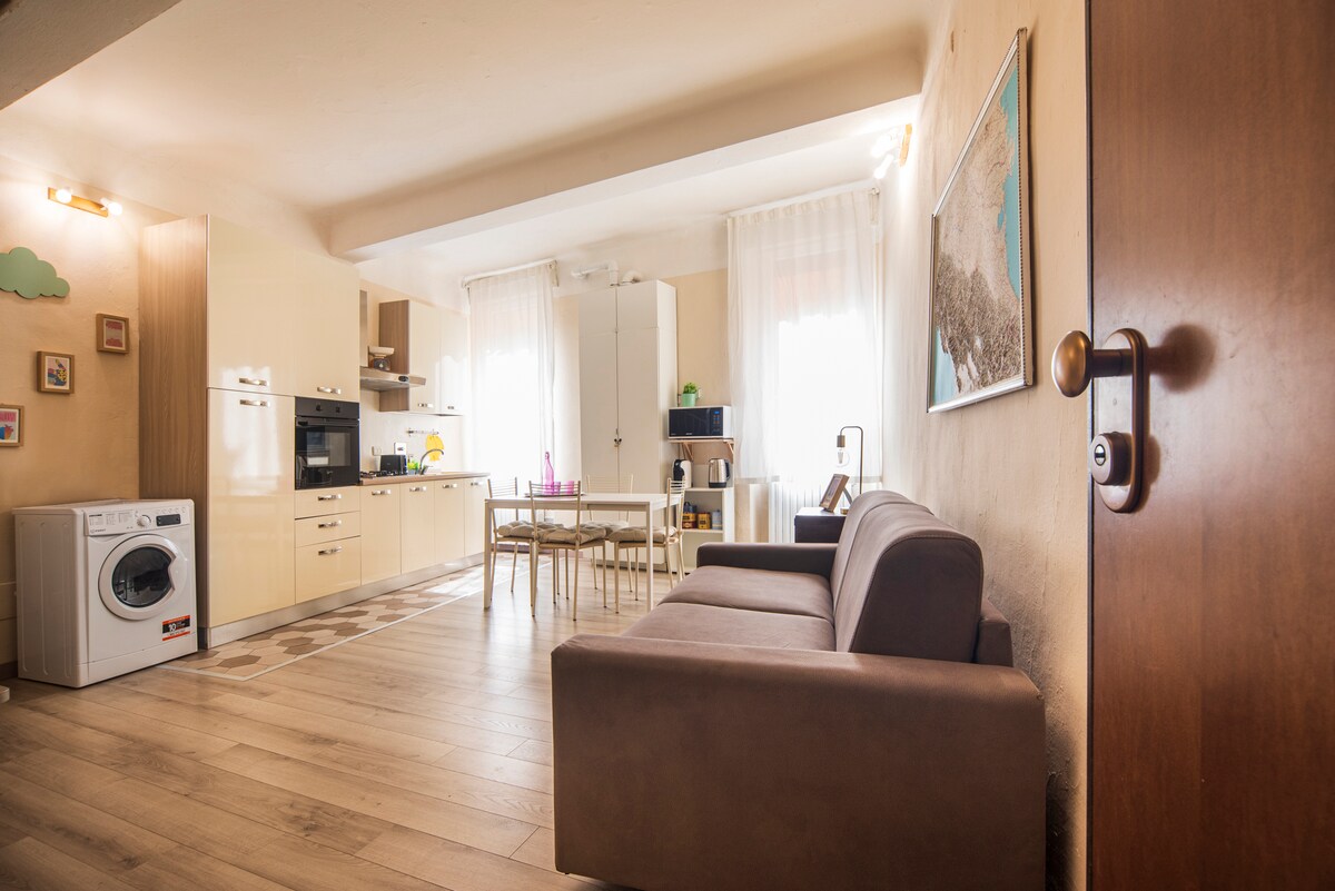 Delizioso bilocale situato al secondo piano di un immobile moderno di recente costruzione classe A2 . Dista 15 minuti a piedi dai principali monumenti della citta' , 5 minuti a piedi dalla stazione ferroviaria e dal casello autostradale 10 minuti di auto. L'appartamento è composto da soggiorno con angolo cottura e divano letto da una piazza e mezza , bagno finestrato e camera da letto. Riscaldamento e raffrescamento sono a pavimento , riciclo dell'aria continuo , videocitofono, garage gratuito