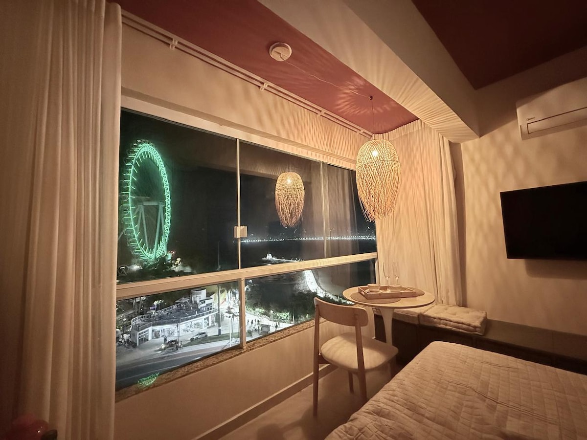 Roda Gigante Studio er 22 fermetra íbúð sem er staðsett í 50 metra fjarlægð frá ströndinni. Með frábæru útsýni yfir hafið, Parísarhjólið og Rua Torta. Það er með hjónarúmi og aukarúmi (0,79 cm x 1,71 cm - tilvalið fyrir börn), eldhúsbúnaði, snjallsjónvarpi, þráðlausu neti og loftkælingu. Byggingin sjálf býður upp á ýmis önnur þægindi eins og: bílastæði, sundlaug, nuddpott, matvöruverslun sem er opin allan sólarhringinn, líkamsræktarstöð og sælkerasvæði með grill.