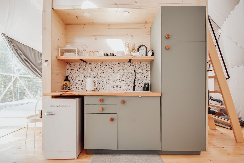 Þetta 4 season geodesic hvelfing kemur heill með fullt vatn, septic og vatn - þar á meðal A/C, rafmagns upphitun og viðareldavél. Njóttu yndislegrar dvalar í hvelfingunni okkar sem er í rúmlega klukkutíma fjarlægð frá Ottawa. Þessi lúxushvelfing er með heitum potti, loftkælingu, upphitun, eldhúskrók með eldavél, viðarinnréttingu og fullbúnu baðherbergi. Svefnfyrirkomulag felur í sér queen-rúm á aðalhæð (murphy-rúm) og king-rúm á risinu. Slakaðu á á útiveröndinni okkar með borðkrók, grilli og eldgryfju.