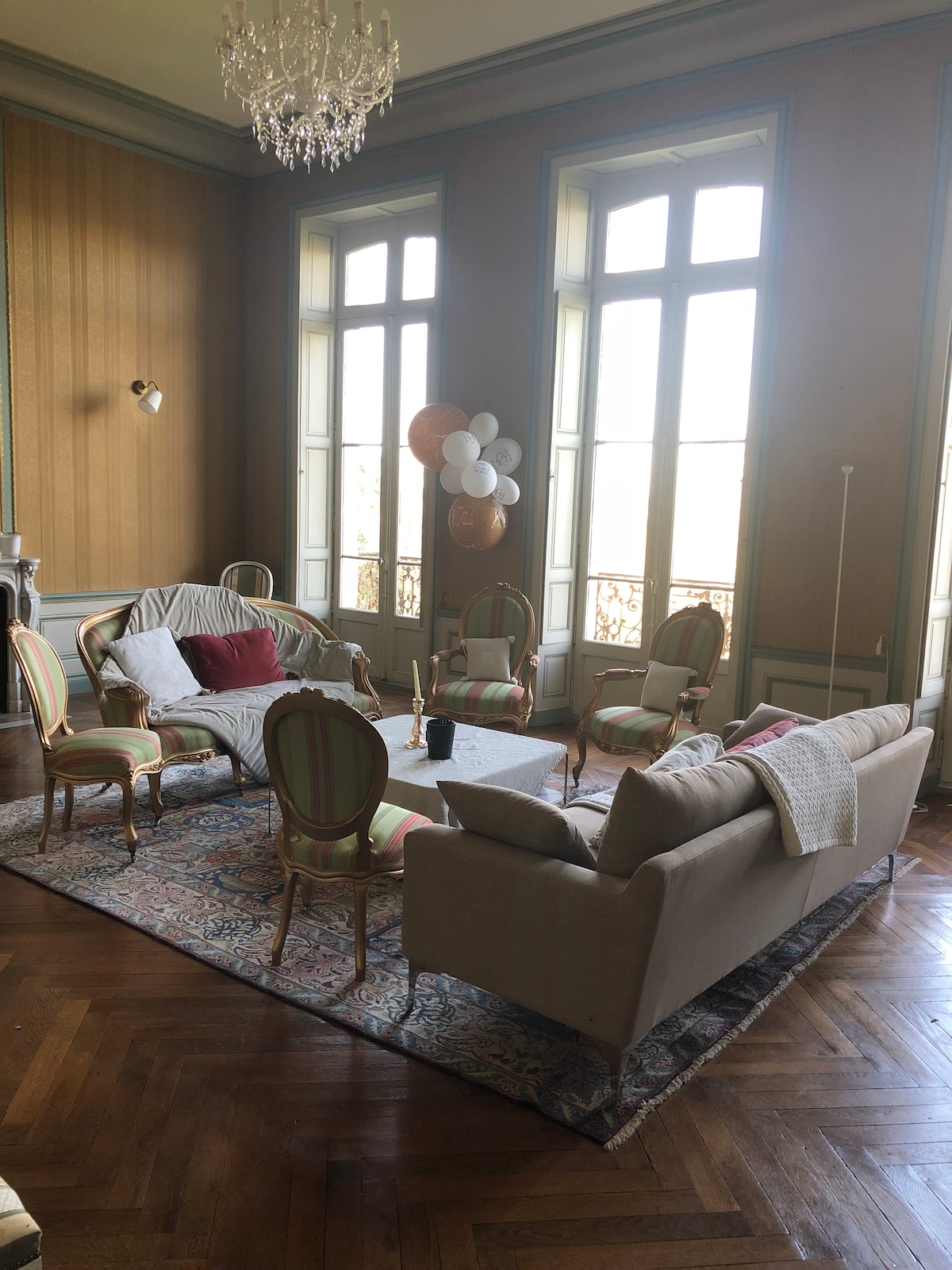 Í gömlu hesthúsum kastalans. Við vildum varðveita sem mest áreiðanleika: eldhús í gömlum kassa, bjálkum og hluta af útsettu rammanum... Rúmgóð herbergi. Stofa:4 svefnherbergi, 2 baðherbergi, 3 SALERNI Samliggjandi 53m2 herbergi með:salerni,þvottavél,grilli,borðtennis,borðum og garðhúsgögnum,stígvélum... stór lóð fyrir þig einn og aðgang að 14ha lóðinni með almenningsgarði, rólum,grænmetisgarði-verger,viði,tjörn,kapellu... HEILLANDI OGKYRRLÁTT UMHVERFI!