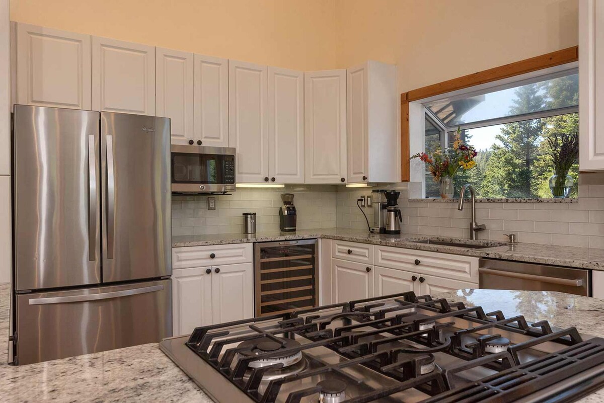 Fallegt fjallaheimili í Tahoe-skógi í rólegu hverfi. Aðeins 7 mínútna akstur að vatninu og Kings Beach/ 13 mínútur að Northstar Slakaðu á eftir skíðagöngu eða á ströndinni í sedrusviðarbastinu okkar utandyra. Stóri, girðingarinnar bakgarðurinn er fullkominn fyrir skemmtun líka með leikgrind og sleðabrekku. Fullkomið fyrir fjölskyldusamkomur, með opnu hugmyndaherbergi með píanó- og viðareldavél, risastórir gluggar með útsýni yfir skóginn. Eldhús kokks með háþróuðum heimilistækjum, verkfærum og vel fylltu búri.