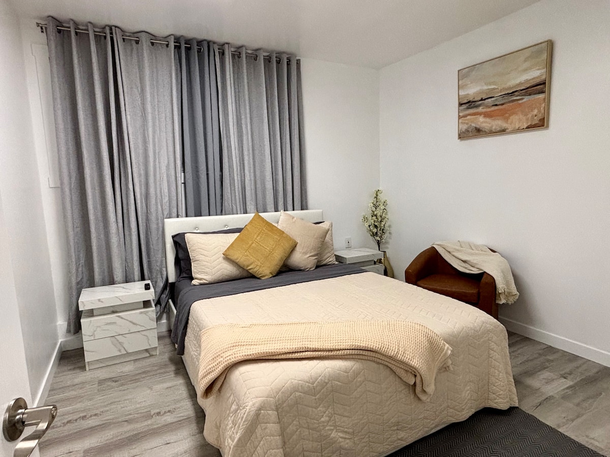Ný endurbætt Boutique 1 herbergja íbúð á frábærum stað fyrir ferðamenn sem eru að leita að þægindum til SeaTac flugvallar. Göngufæri við matvöruverslun, veitingastaði, bílaleigu og léttlest. Þetta rólega hverfi er í um 5 mínútna akstursfjarlægð frá SeaTac-flugvelli og rétt fyrir utan hávaðann í flugvélinni. Hjólaðu á léttlestina á leikvangana og í miðborg Seattle og Amtrak! Southcenter-verslunarmiðstöðin með mörgum verslunum og veitingastöðum er í stuttri 10 mínútna akstursfjarlægð!
