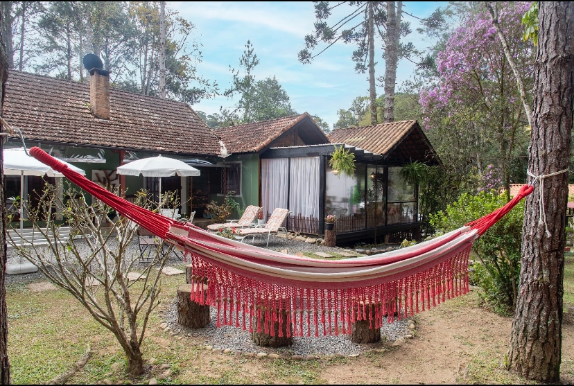 Refuge das Juçaras er dæmigert skógarhús, sveitalegt, hreint, notalegt og umkringt risastórum steinum sem gera landslagið heillandi. Húsið er innan umhverfisverndarsvæðis sem er innfellt í náttúruna, þar á meðal juçara pálmatré, fernur og aðra fegurð Atlantshafsskógarins. Neðst í landinu liggur kristallaða Alambari-áin sem aðskilur land okkar frá Itatiaia-þjóðgarðinum. Húsið er á svæði nálægt smaragðsbrunnum Serrinha. Þetta er heillandi staður!