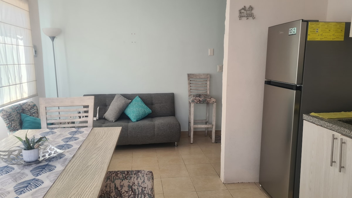 Es una estancia en planta alta con balcones en las habitaciones tiene buena vista hacia las montanas y muy buena iluminacion, las habitaciones tienen una cama king size, en total son 3 camas king size. su television, su ventilador. el departamento cuenta con su cocina integral,frigobar,parilla,cafetera,licuadora trastes para cocinar.Estamos por la carretera nacional y a 5 minutos en automóvil del jardin surrealista. **** no aceptamos mascotas.