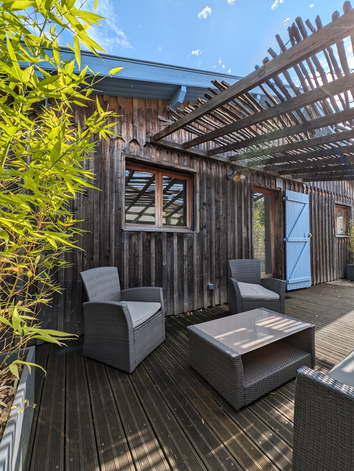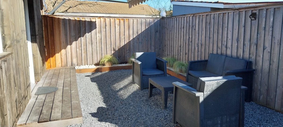 Slakaðu á í þessu einstaka og friðsæla rými. Staðsett ekki langt frá Teich Ornithological Reserve, komdu og slakaðu á eða njóttu Arcachon Basin í nokkra daga eða lengur ... Þú munt hafa allan nauðsynlegan búnað. Einkagarður og skógur ásamt útiverönd til að njóta veðurblíðunnar. Að auki getur þú notið nudds á lægra verði! Sjáumst fljótlega Nadège