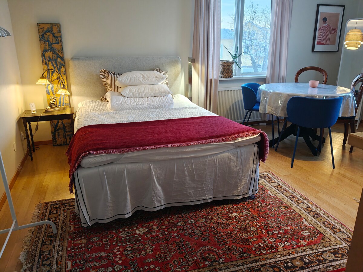 Ljus liten vindslägenhet med egen toalett dusch o pentry bara ett stenkast från Centralstationen! Lugnt trivsamt område några minuters promenad från centralstation o centrum. Nära NUS och universitet. Passar bäst för 1-2 gäster men fungerar som övernattning för 3 personer. Säng 140×200 cm, bäddsoffa 120×200 cm. Möjlighet till tvättmaskin för längre vistelser. Te och snabbkaffe ingår. Ett självständigt boende med självständig incheckning. Passar lugna skötsamma gäster.