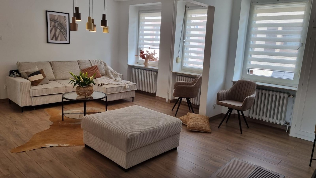 ✨ Verið velkomin í notalegu íbúðina okkar með útsýni yfir borgina Bitche ✨ Íbúðin okkar er 75 m² að stærð og er staðsett á fyrstu hæð fjölskylduhúss. Hún er notaleg, nútímaleg og vinaleg. Við búum á jarðhæðinni sem gerir okkur kleift að vera til taks en virða samt algjörlega sjálfstæði þitt. Íbúðin er fullbúin, vandlega skreytt í notalegum og nútímalegum stíl og býður upp á fallegt rými. Þú munt njóta stórkostlegs útsýnis yfir borgina Bitche
