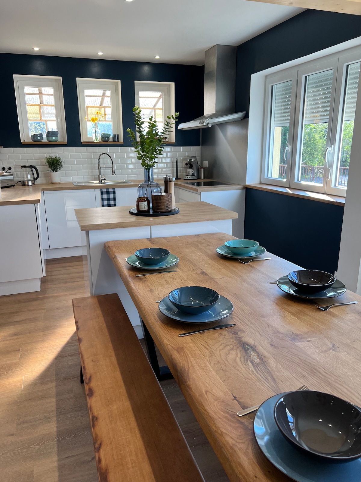 Liebe Gäste, herzlich willkommen in unserem stilgerecht renovierten Fachwerkhaus aus dem Jahre 1850. Wir möchten Ihnen Wohnen in besonderer Atmosphäre bieten: Sichtfachwerk, teils freigelegtes Gemäuer und Naturlehmdecken treffen auf Designerstühle und -lampen. Klare Linien in der Einrichtung, auf organische Strukturen des Hauses. Üppiges Jelängerjelieber, eine heimische Kletterpflanze, rankt um das mit Stauden umsäumte Haus. Rund um das Haus befinden sich zahlreiche, kostenlose Parkplätze.