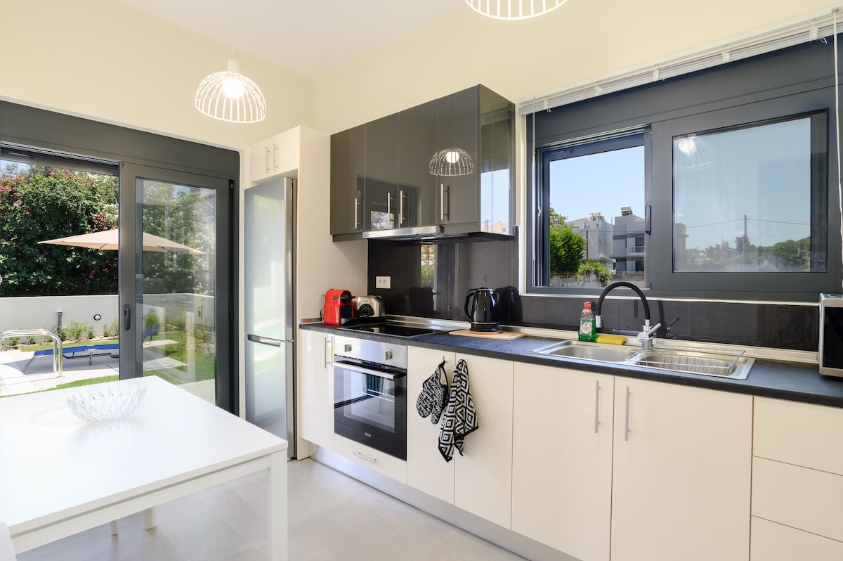 Með opnu útsýni yfir Eyjahafið og upphækkaðri staðsetningu innan samstæðunnar býður Klidon upp á eitt fallegasta útsýnið í Lachania. Þessi nútímalega villa með þremur svefnherbergjum sameinar útsýni yfir ströndina og nútímalegan þægindi og skapar þannig afslappað og rúmgott afdrep fyrir allt að sex gesti. Fullkomið fyrir fjölskyldur eða litla hópa sem leita að friðsælum stað í fallegu umhverfi.