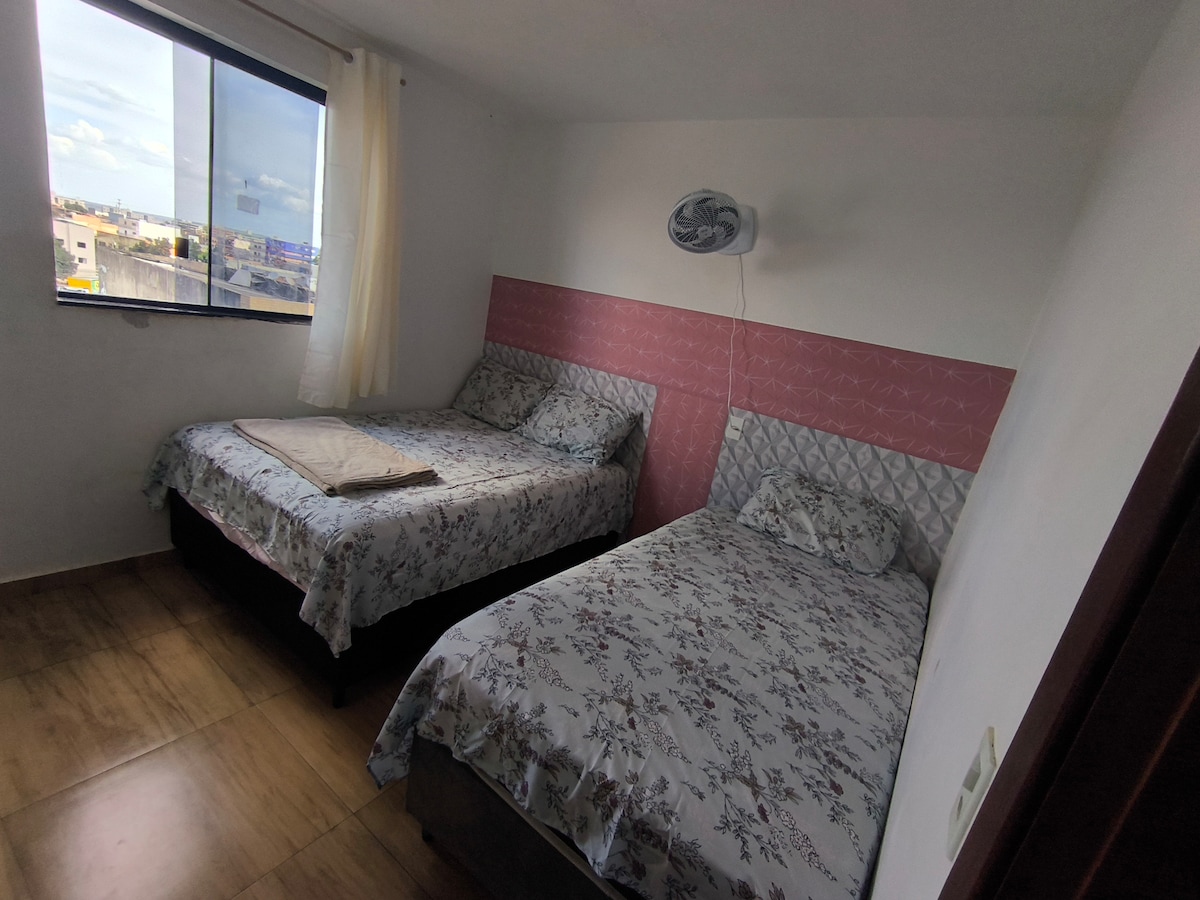 Njóttu einfaldleikans á þessum kyrrláta og vel staðsetta stað Á FRÁBÆRU VERÐI!!! Íbúð með svítu, nýlega uppgerð, til að mæta þörfum og þægindum gesta með frábærri og öflugri loftræstingu og loftrakatæki! Metropolitana er rólegt og öruggt hverfi í Núcleo bandeirante með innanhússborgarsjarma! Nálægt Metropolitan Experiential Park er staður til að fara í fallega gönguferð í lok dags, almenningsgarð með plöntum sem eiga uppruna sinn í cerrrado.