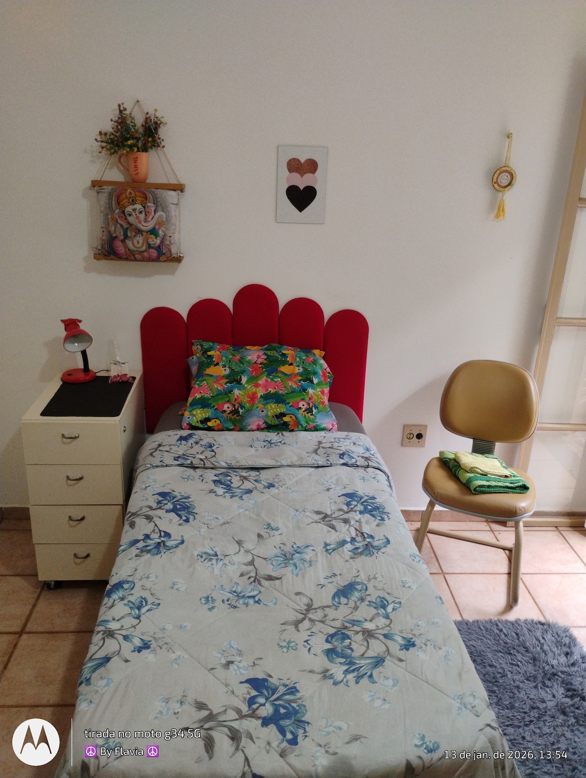 ✨ Quarto Privativo Ganesha ✨ Seu quarto PRIVATIVO, um refúgio com varanda privativa, 🌈 e com 🔑 na porta. Cama mega confortável, enxoval macio, ventilador de teto, guarda roupas e um 🎁 pra vc! Banheiro Impecável: Compartilhado com apenas mais 2 hóspedes (se houver). Limpeza rigorosa diária e um banho quentinho e revigorante! Valorizo o respeito e o silêncio. Aqui, o dia é dia e a noite é noite. Aqui, o bem encontra o bem. Reserve agora e sinta essa energia! 🦋🌿 Se vc é do bem vem!