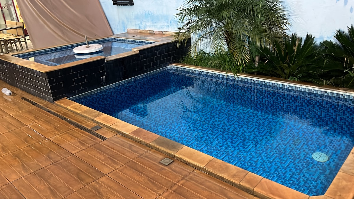 Leve toda a família a este ótimo lugar com muito espaço para se divertir. Mini snooker, piscina de raia e prainha com hidro, gramado, casinha para crianças, estacionamento para até 6 carros, cesta de basquete, terraço, Netflix e redes para descanso. Mini sítio dentro da cidade ideal para quem tem crianças e pets. Hospedagem para famílias que tem filhos estudando em Ribeirão Preto. Terreno de 18x45 e 350 metros de área construída. Podemos alugar somente a área de lazer também.