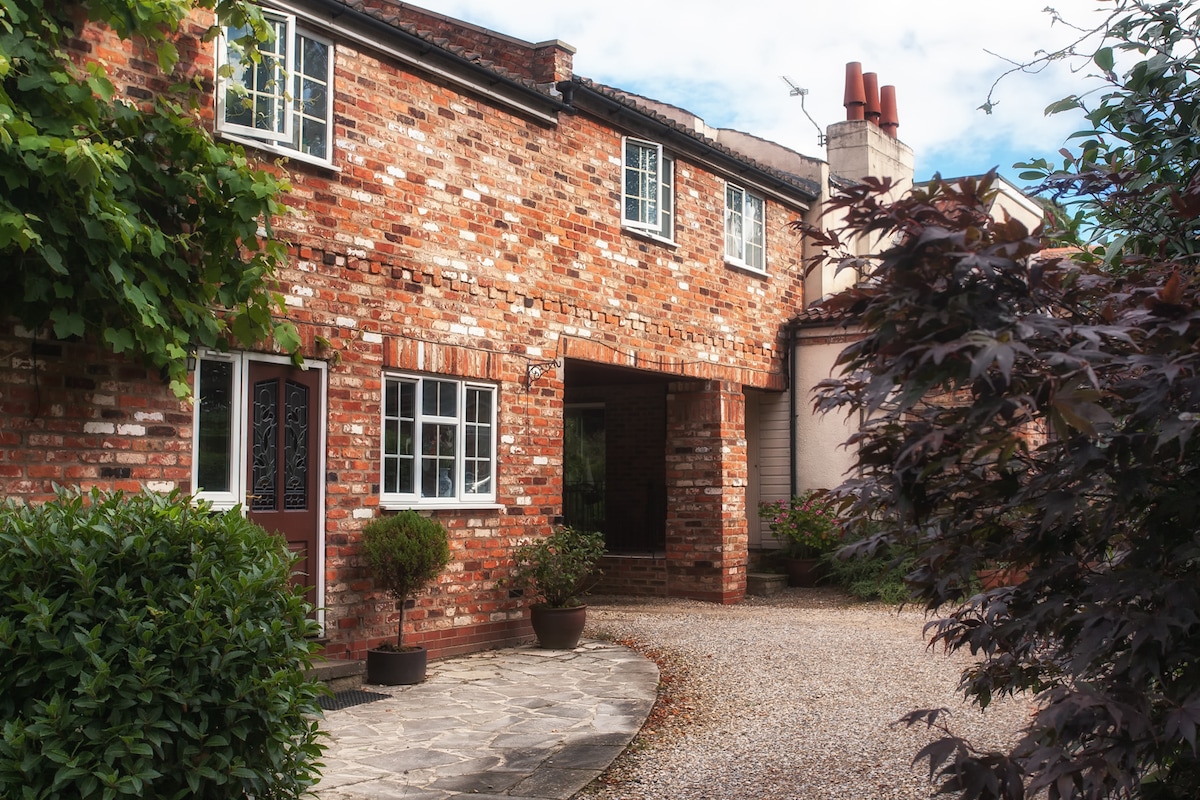 Nútímalegt, umbreytt, sjálf innihélt tveggja hæða viðbyggingu. Ókeypis bílastæði fyrir utan veginn á fallega fallega svæðinu í Fulford, York. Staðsett í 25 mínútna göngufjarlægð, eða 5 mínútna rútuferð frá strætóstoppistöðinni í 1 mínútu fjarlægð, til miðborg New York. Strætisvagnar fara á 7 mínútna fresti. New York-kappakstursbrautin er í 1 km fjarlægð frá York Designer Outlet. Nútímalegur vínbar, kaffihús, efnafræðingur, samlokubúð og hefðbundin alvöru ölpöbb eru í þægilegri göngufjarlægð í Fulford