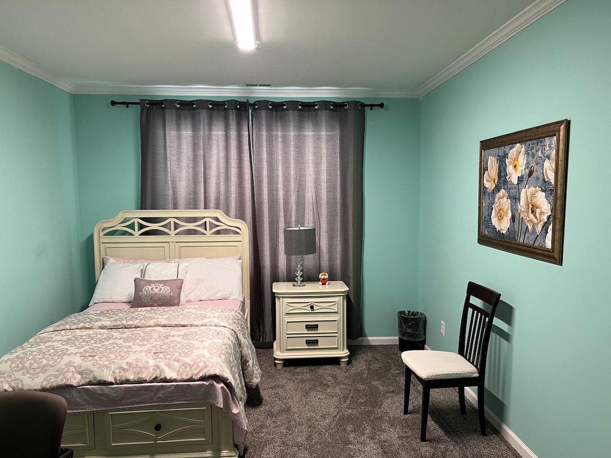 Restful Refuge er uppgerð stúdíóíbúð með einu svefnherbergi sem felur í sér fullbúið eldhús og fullbúið bað niðri á heimili okkar. Fyrir dvöl þína hjá okkur verður þú með sérinngang. Við erum staðsett aðeins nokkrar mínútur frá Downtown Columbia en afskekkt í litlu samfélagi við tjörn. Löngun okkar er að veita stað til að hjálpa þér að slaka á og endurnærast á meðan þú dvelur í Columbia. Hvort sem þú ert í bænum fyrir fyrirtæki eða ánægju, viljum við gjarnan deila Restful Refuge okkar með þér.