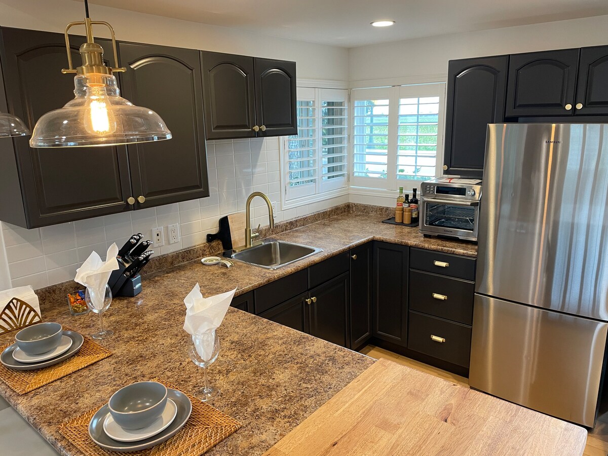 Welcome to your Scandinavian style large one-bedroom, one-bath, plus office retreat, perfect for couples or solo travelers. Enjoy a private entrance with keyless entry, office, wi-fi, and a fully stocked kitchen with coffee, tea, and espresso provided. Relax in your own private courtyard with a covered patio, fire pit, dining table, Weber BBQ, and seating. Ideal for work or relaxation—everything you need for a comfortable stay. Babies/toddlers welcome - highchair, car seat, pack n play, bed.