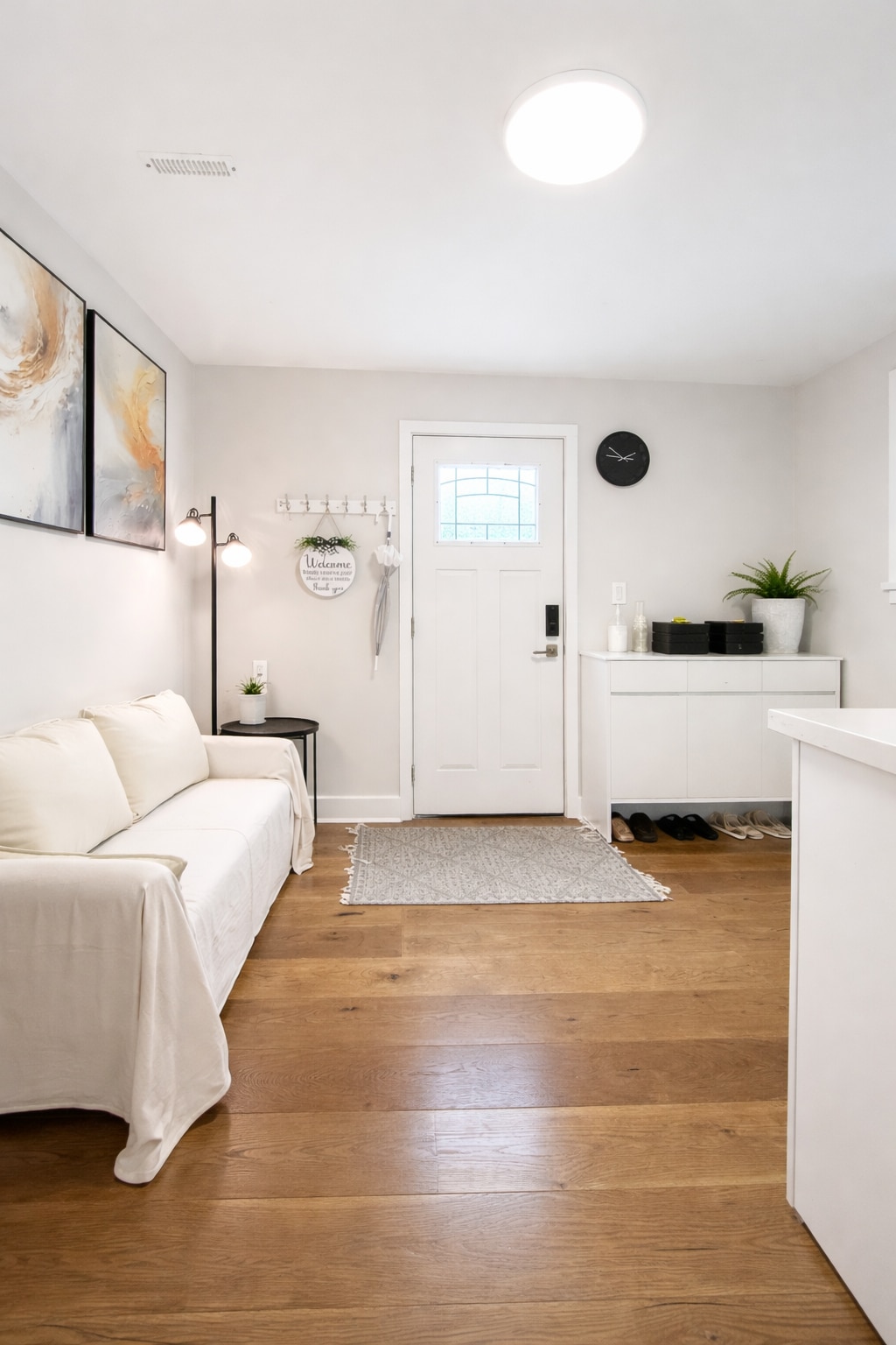 80 fermetrar af einkarými með: 1 svefnherbergi, 1 stofa og baðherbergi Hátt til lofts á tveimur hæðum EKKI ELDA (aðeins hita mat - örbylgjuofn) 2 rúm: King-rúm í svefnherberginu, svefnsófi í queen-stærð í stofunni Þessi eign er tengd við heimili okkar en er aðskilin með vegg til að tryggja næði Sjálfsinnritun Geislandi gólfhiti Fyrsta flokks hurð og gluggar frá Evrópu Bílastæði án endurgjalds Strætisvagnastöð við dyrnar 3 mínútna göngufjarlægð frá matvöruverslun og veitingastað 10 mínútna göngufjarlægð frá Steveston Vill