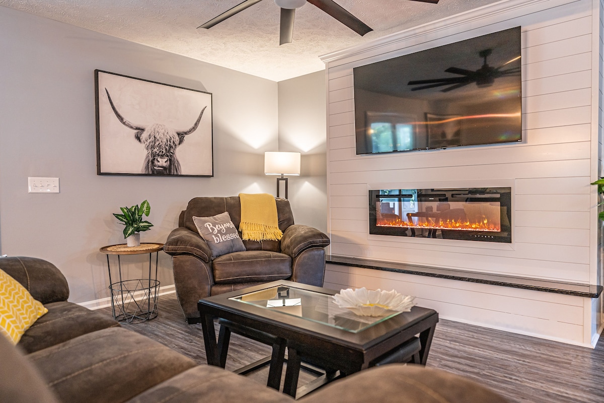 Velkomin í The Patriot, fallega skreyttu íbúð á jarðhæð við golfvöllinn í Foxfire-þorpinu. Njóttu stórfenglegs útsýnis yfir 17. grænu, tveimur einkapallum, smekklegum innréttingum og tveimur en-suite svefnherbergjum með rúmum í king- og queen-stærð með minnissvampi. Sérstök vinnustöð og hlýlegt rými gera þér auðveldara fyrir að vinna eða slaka á. Þetta er fullkomið fyrir golfara, pör og friðsælar fríferðir, skrefum frá pickleball-völlum og nokkrum mínútum frá Pinehurst.