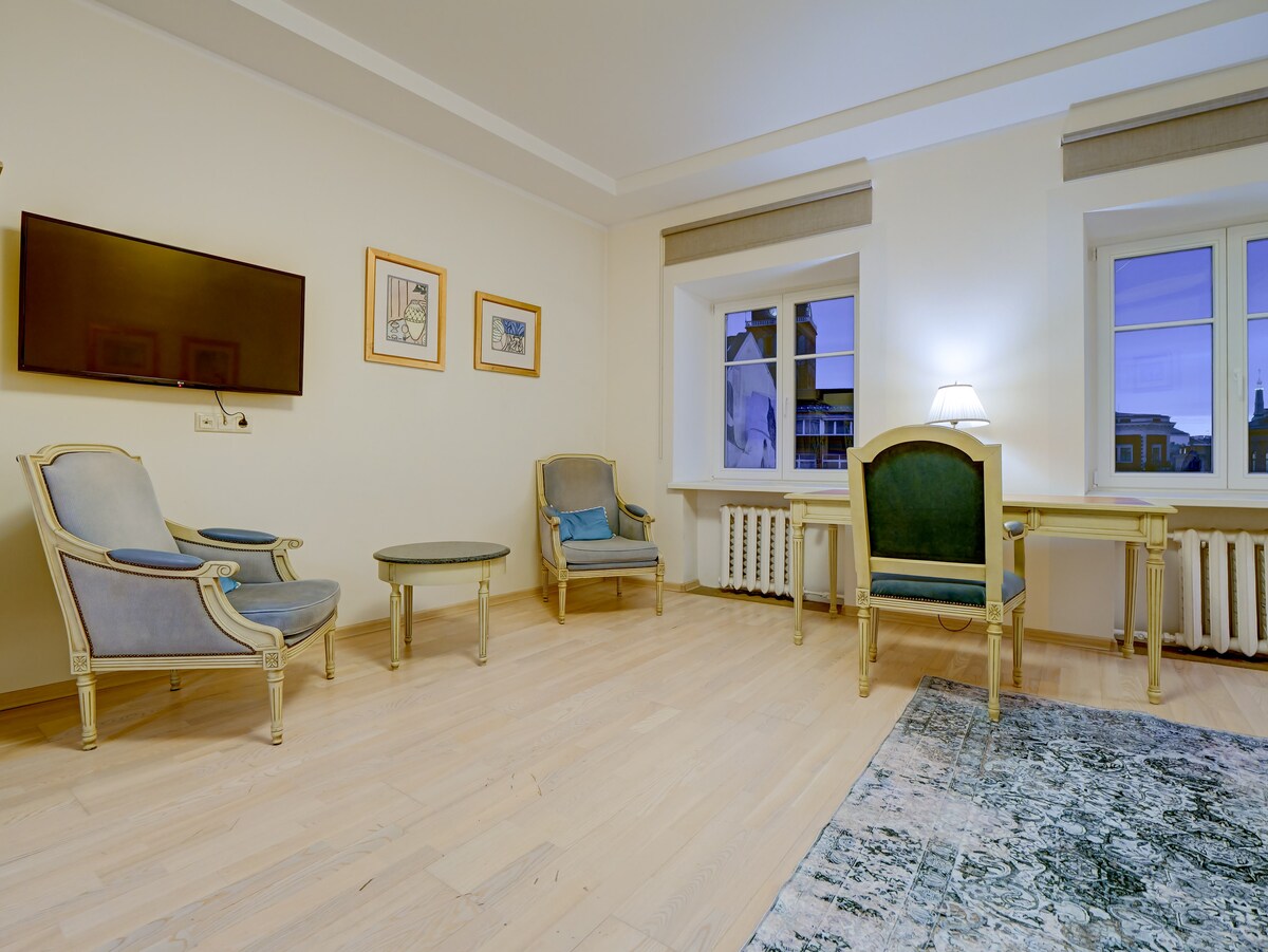 Kalku Deluxe Apartments are located in the very center of historic Riga, in the Old Town. The apartments are two-bedroom with a cozy living room, separate bedroom and a well-equipped kitchen with a dishwasher and washing machine. A flat-screen TV with satellite channels and free Wi-Fi are also included. There is also a cot for babies under 3 years old in the apartment.