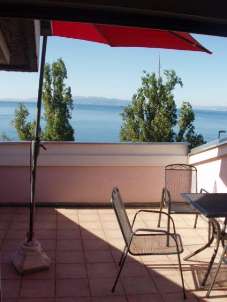 Íbúðin er staðsett á Cantridi nálægt fræga fótboltaleikvanginum, miðja vegu milli miðbæjar Rijeka og Opatija, nálægt veitingastöðum, kaffihúsum, bakaríum, verslunarmiðstöð Íbúðin er með fallegt útsýni yfir allan ána og eyjurnar. Strendurnar eru í 5 mínútna göngufjarlægð. Stúdíóíbúð (25 m2) er nýlega innréttuð og samanstendur af: herbergi, eldhúsi og baðherbergi. Íbúðin hefur möguleika á að nota uppþvottavél og þvottavél. Það er búið loftkælingu og hröðu interneti, sjónvarpi...