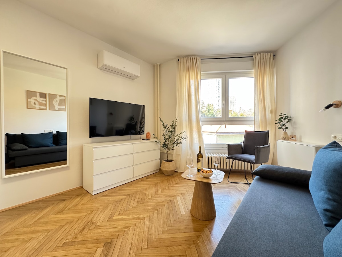 Situated in the city center, beautifully modern furnished and specious new apartment with one bedroom and the living room, kitchen, bathroom and balcony. With air-condition, wi-fi, smart TV. Apartment offers you comfort, and ideal position for discovering Rijeka. There is no designated parking s this is a European City center. There are several garages and surface lots within very short walking distance. Please search for Parging Korzo, Parking Riva, or Garaza Zagrad.