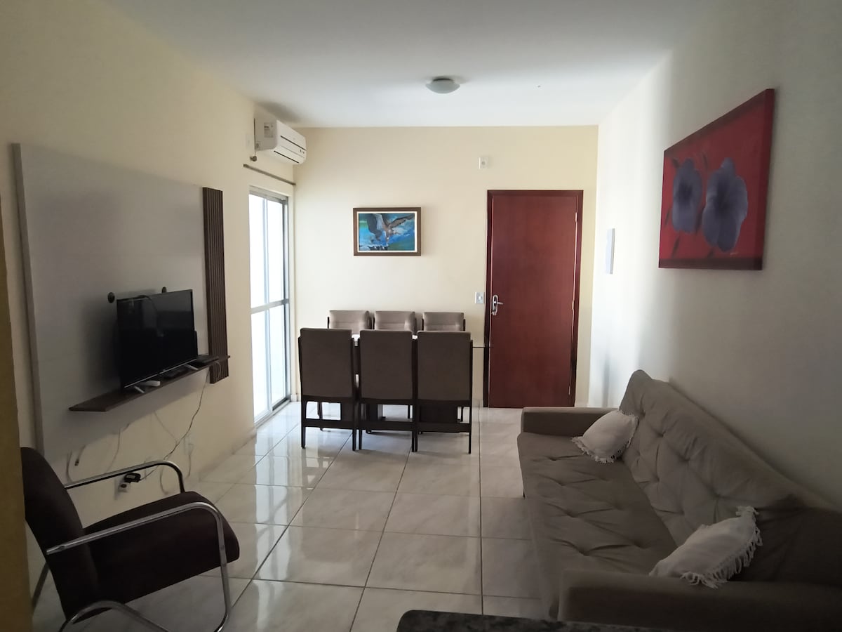 Heil íbúð á 4. hæð, aðeins aðgengileg með tröppum, þægileg og vel staðsett, 600 m frá verslunarmiðstöðinni og Atacadão. Hér geta allt að átta gestir sofið þægilega. Hún er með loftviftum í svefnherbergjum og stofu, stofu með svefnsófa og snjallsjónvarpi, 1 svefnherbergi með hjónarúmi og snjallsjónvarpi og 1 svefnherbergi með hjónarúmi + hjónadýnu. Vel búið eldhús, þráðlaust net, rúmföt og handklæði, 1 bílastæði og þvottahús opið allan sólarhringinn í íbúðinni. Fataskápur með takmarkaðri notkun, efri hluti í boði.