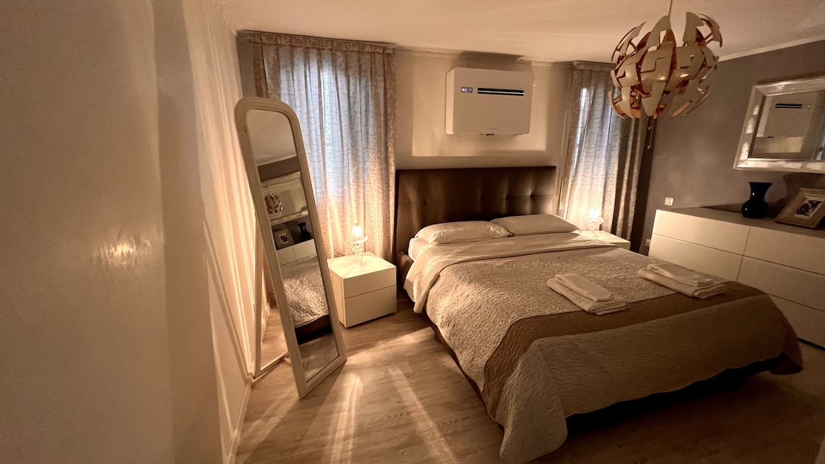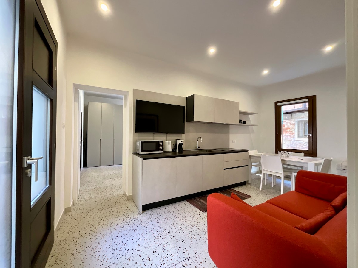 Bjarta íbúðin er fullkomin blanda af nútímalegum stíl og hefðum. Öll húsgögnin eru glæný, hvíta mósaíkgólfið, loftið með bjálkum og skreytingum endurspegla hefðbundnar innréttingar Feneyja. Íbúðin er með eftirfarandi þjónustu: - fullbúið eldhús með framköllunareldun og greiða ofn; - loftkæling bæði í borðstofu/eldhúsi og svefnherbergi; - hrein handklæði og rúmföt; - háhraða WiFi (og Ethernet tenging); - Cinema TV með Sky decoder (með áskrift að alþjóðlegum rásum), tónlist hljóðkerfi. Rialto-brúin er í aðeins sjö mínútna fjarlægð eða farðu aðeins lengra til Piazza San Marco á um 15 mínútum. Að týnast í fallegu húsasundunum er hluti af fegurðinni við að skoða Feneyjar. Vinsamlegast virðið fegurðina! Eins og þú sérð hefur allt verið hannað og gert þannig að það passar fullkomlega við þessa sneið af himnaríki. Við eyddum miklum tíma og áhuga á að búa til þessa litlu vin. Vinsamlegast hagaðu þér eins og þú værir heima hjá þér. Athugaðu að þegar dvölin hefur verið staðfest þarf ég að fá ljósmynd af skilríkjunum þínum. Með fyrirfram þökk fyrir samvinnuna.