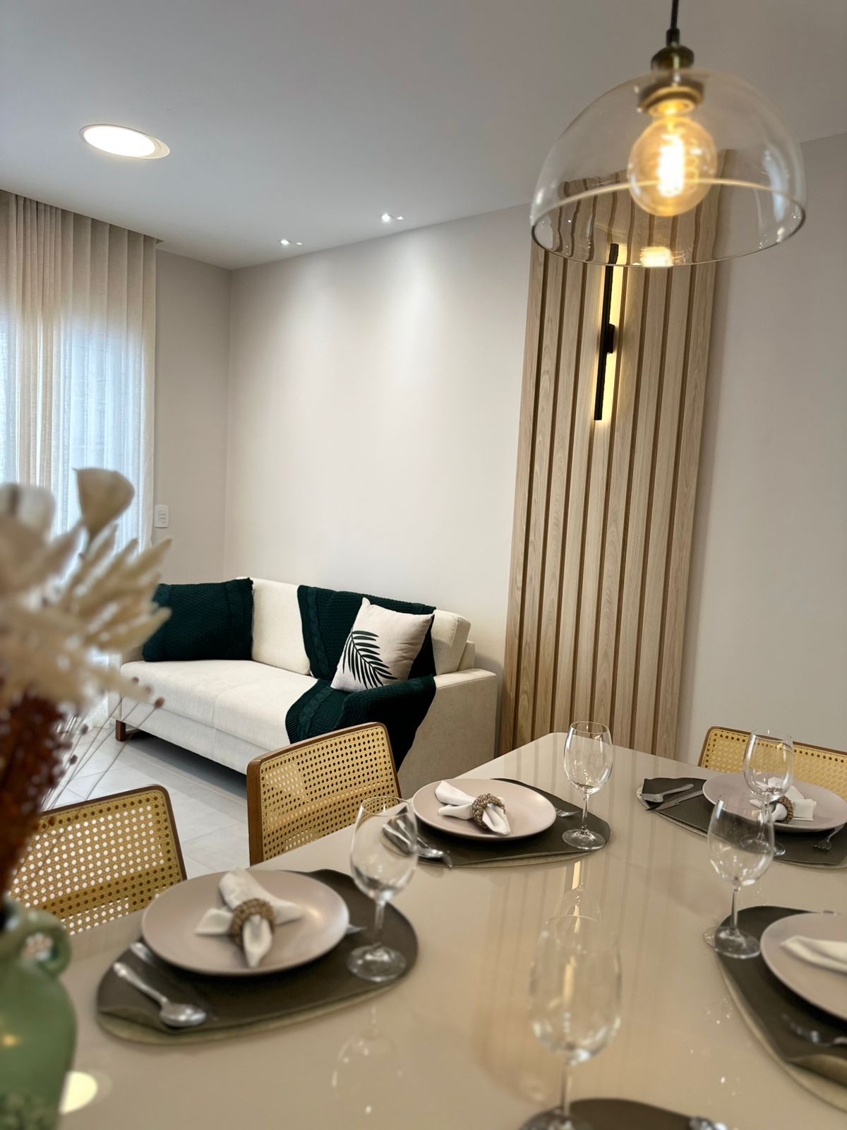 Apartamento incrível num prédio novíssimo, com decoração sofisticada e funcional. Nossa casa no inverno que oferecemos para hóspedes no verão. Ar condicionado split. WiFi 240Mb. TV 60" na sala e 35" nos quartos. Cook top, forno elétrico, microondas. Geladeira e freezer. Cozinha e copa totalmente equipadas. Lava louça, Lavadora / seca roupa. 1 suite com cama Queen e um quarto com banheiro e duas camas box. Varanda gourmet fechada com vidro, com churrasqueira e geladeira extra de bebidas.