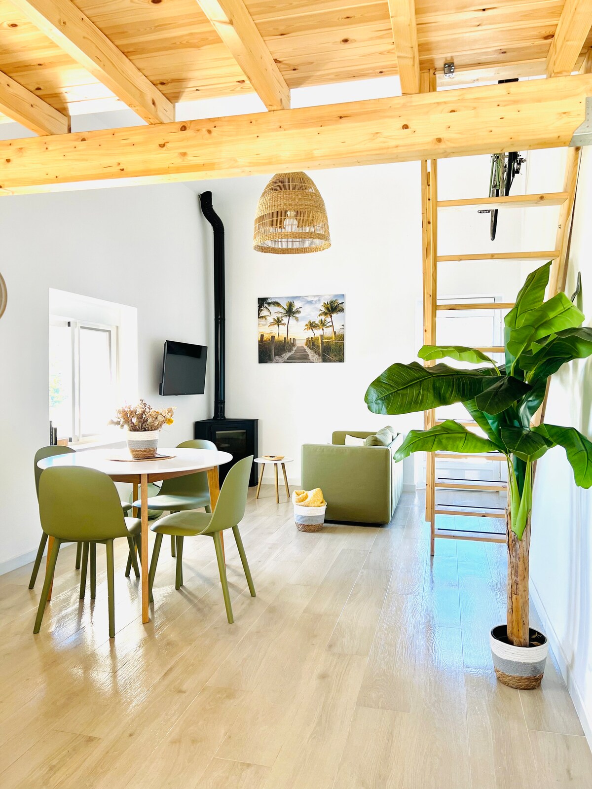 Björt loftíbúð með útsýni yfir hafið
