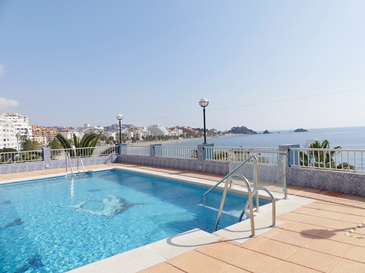 Þetta er rúmgóð íbúð með einu svefnherbergi við sjávarsíðuna á vinsæla staðnum San Cristóbal-strönd í Almuñécar. Íbúðin hefur alla aðstöðu með nútímalegum skreytingum. Það er með sameiginlega sundlaug sem er opin allt árið, þráðlaust net, loftkæling, upphitun og öll heimilistæki. Almuñécar er vinsæll ferðamannabær í Costa Tropical með mjög vægum hita. Íbúðin er mjög vel staðsett, fyrir framan göngusvæðið og sjóinn og ströndina. Bíll er ekki nauðsynlegur. Öll þjónusta er í nágrenninu.