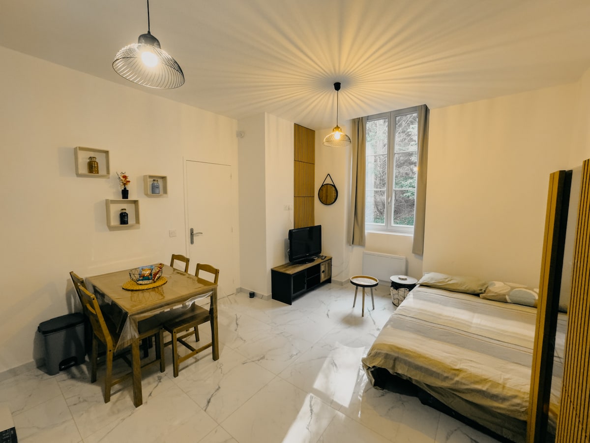 ✨Jólatöfrarnir eru að koma heim til þín! Heillandi árstími er loksins runninn upp... og til að fagna því færðu kassa af súkkulaði með öllum bókunum yfir hátíðarnar! 🎁🍫 40 fermetra tveggja herbergja íbúðin okkar, fallega enduruppgerð og skreytt í jólalitum, tekur á móti þér í notalegu og hátíðlegu andrúmslofti frá því að þú kemur.❄️🌲 Þetta er tilvalinn staður fyrir frí eða vinnugistingu.